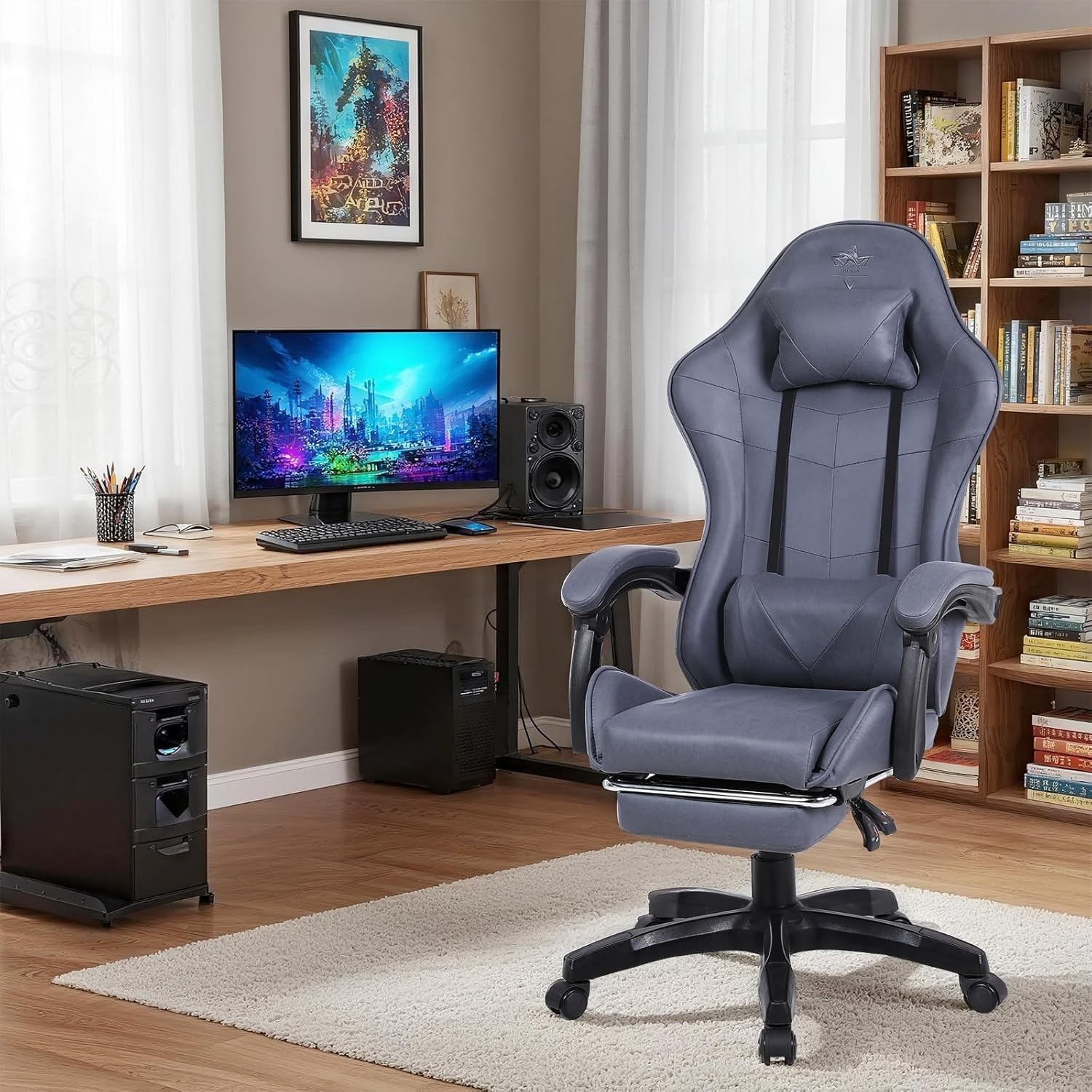 High-Back PC Gaming Chair Office Chair, Desk Task Chair Computer Racing Chair, PU Ergonomic Executive Swivel Rolling Chair with Lumbar Support for Women, Men
