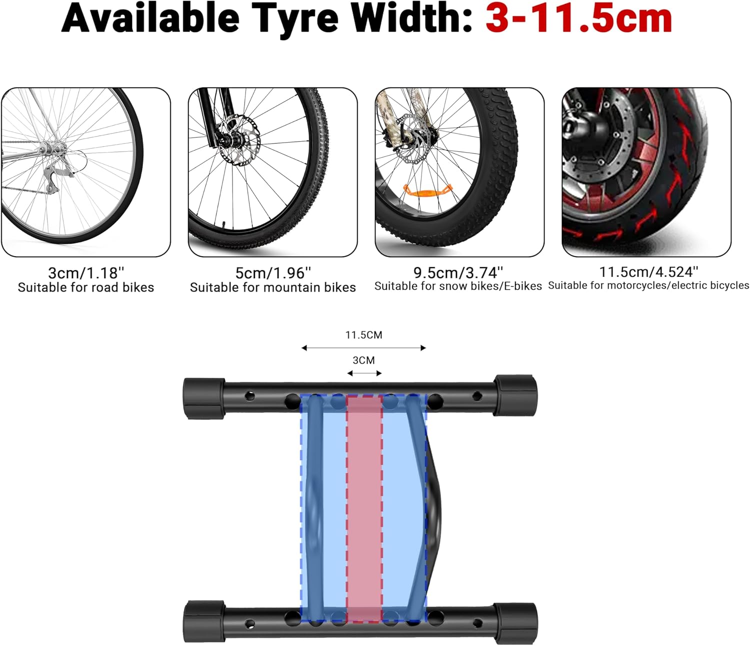 Himiway Bike Floor Parking Rack, Adjustable Freestanding Bicycle Storage Rack, Bike Floor Stand for 3-11.5cm Tyre Width Mountain Road MTB Bikes for Indoor&Outdoor Garage Storage