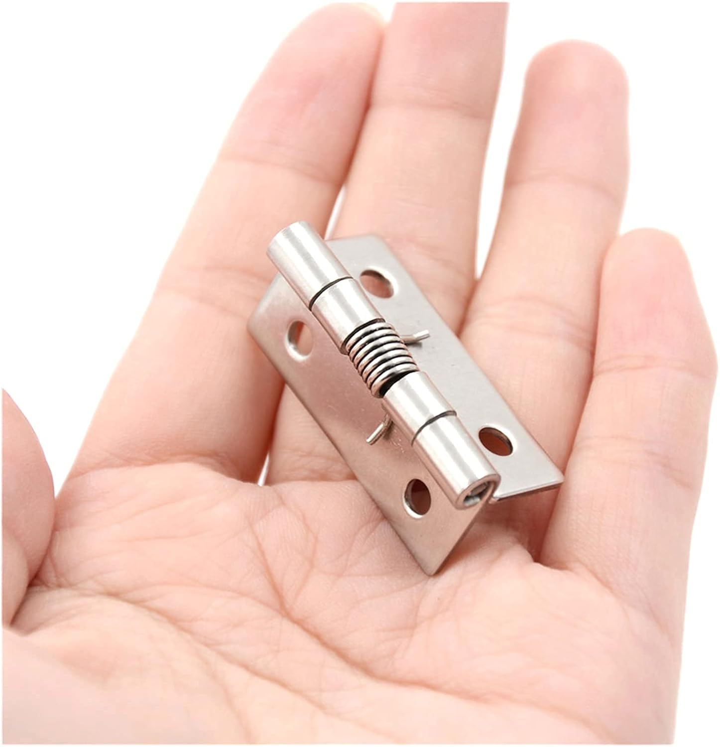 hingeProduct Name: Door HingeMounting Hole Diameter: 5mm/0.2";Dimension: Opened: 50 x 40mm/ 2" x 1.6"(L*W)Mounting Hole Distance: 37mm/ 1.5"Close Total Size: 50 x 20 x 5mm/ 2" x 0.8" x 0.2"(L*W*T)Package Content: 1 x Door HingeMain Color: Silver ToneMaterial: Stainless SteelWeight: 25gInstall by screw, screw is included here.Note:Light shooting and different displays may cause the color of the item in the picture a little different from the thing.The measurement allowed error is +/-1-3 cm.