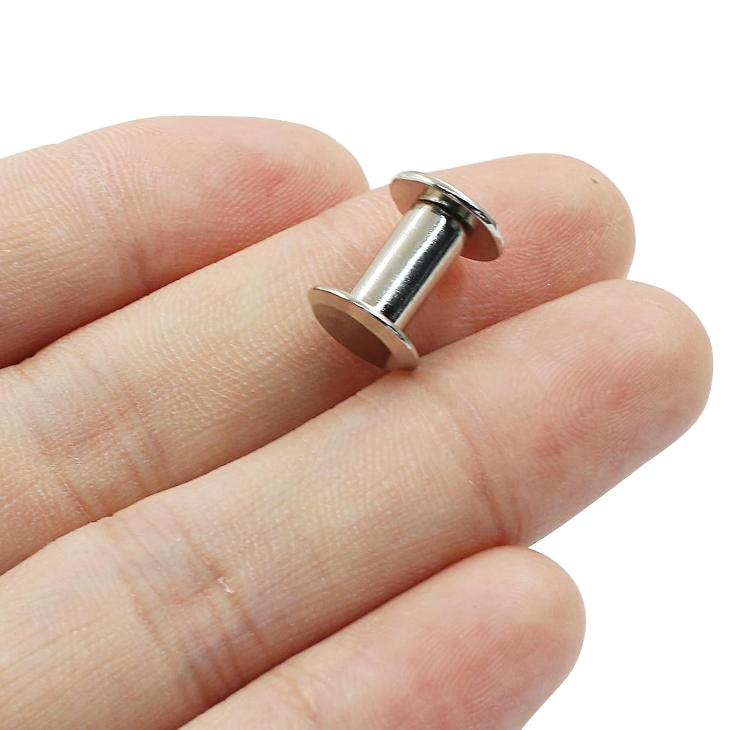 Specifications: Quantity: 30 Material: Carbon Steel Head Type: Phillips Head Rod Length: 10mm / 0.4 inch Rod Diameter: 5mm / 0.2 inch Screw Head Diameter: 9.4cm / 0.37 inch Color: Silver Features: High quality nickel-plated carbon steel can significantly increase hardness and effectively prevent corrosion. The universal design allows you to use it in a variety of applications, such as leather, books, photo albums, and more. NOTICE: 1.Due to different monitors, there may be a little bit of color difference. 2.Due to manual measurement, please allow 1-2mm difference, thanks!