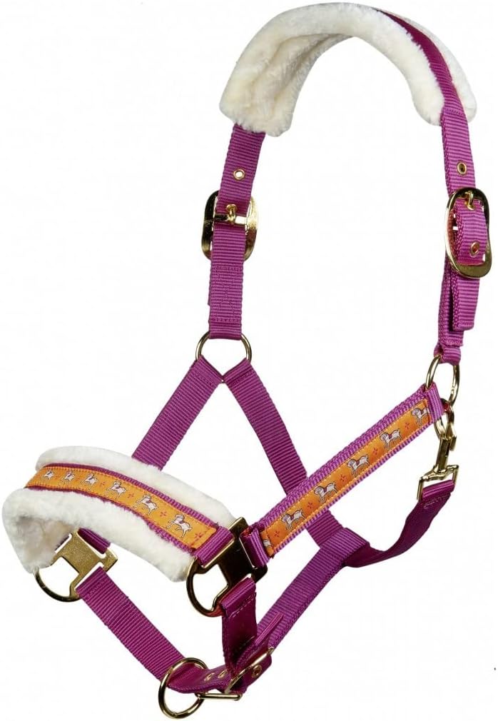 Uni-colored halter made of sturdy woven material with embossed branding on the headpiece and noseband. The headcollar and noseband are lined with soft Hippopren® padding to protect against chafing. For perfect adjustment, the halter has three adjustment options with satin-finished pin buckles and a snap hook.