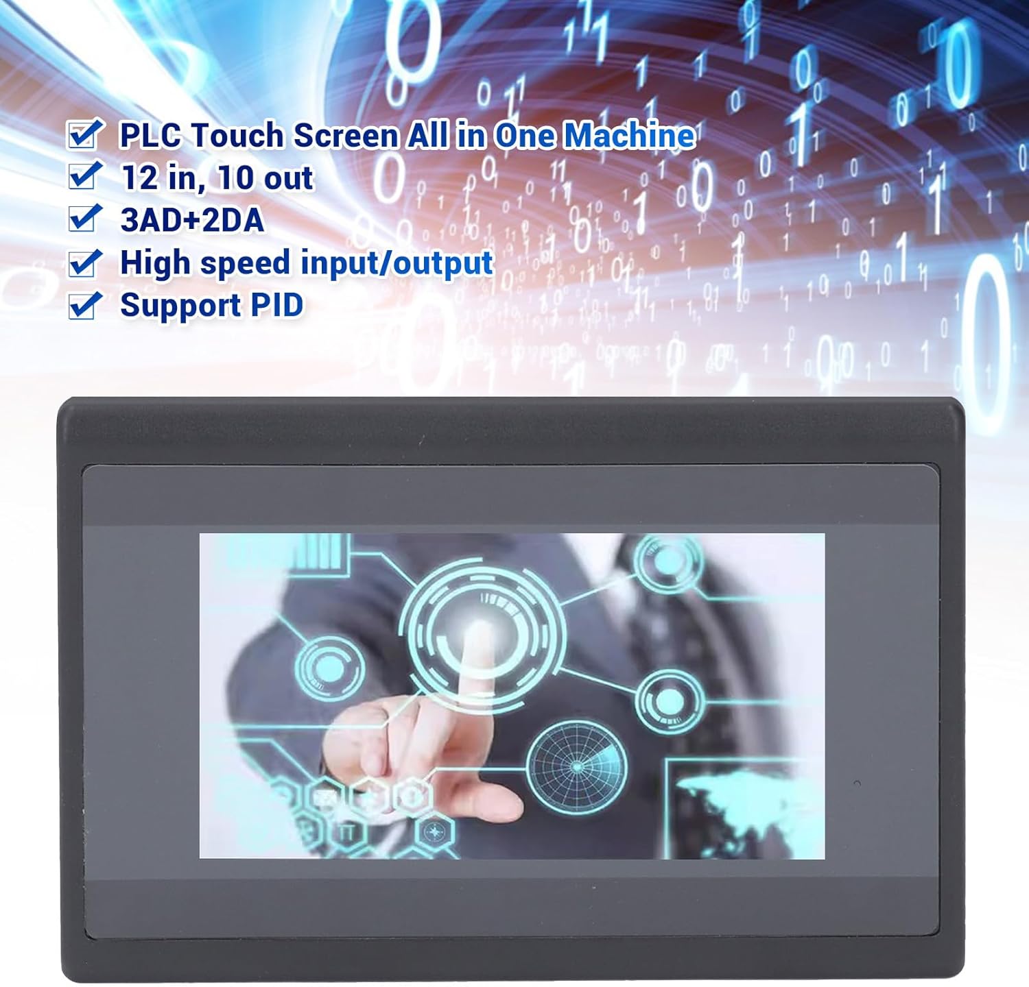 Features: Main Purpose: Primarily intended for use with various PLCs or intelligent controllers that have communication ports, this device is known for its low power consumption, fast operating speed, and . Secure Use with High Safety Standards: Designed with safety in mind, the front panel complies with IP65 standards for flat panel installation, while the rear shell meets IP20 requirements, ensuring a secure setup. Simplified Setup with Easy Installation: Installation is straightforward, thanks to a hole size of 130x80mm and the inclusion of screws and fixing accessories, enabling direct screen mounting. Specification: Item Type: PLC Touch Screen Material: ABS Model: WSB4322R Size: Approx. 140x98x36mm / 5.51x3.86x1.42inch Opening Size: Approx. 130x80mm / 5.12x3.15inch HMI Section: Display Size: 4.3 inch Resolution: 480x272px Memory: 16M FLASH CPU: 600MHz ARM9 built in 8MB DDR2 memory Programming Software: for WS HMI Setup V3.1 5.1 PLC Section: Output Type: Relay Number of IO Points: 12 inputs 10 outputs Power Supply Voltage: DC 24V Output Current: 5A Analog Input: Default 3AD 0-10V, can be changed to 4-20mA Analog Output: 0-10V High Speed Counting: 2 channels at 60K Pulse Output: None Communication Ports: 1 x 232 serial port, 1 x RS485 Clock: Supported Memory Capacity: 8000 steps Download Speed: 38.4 Kb PLC Series: Compatible with for FX3U Series Programming Software: Compatible with PLC Programming Software for GX Developer or for GX Works 2 How to Use: Follow the diagram to use. PackageList: 1 x PLC Touch Screen 2 x Installation Screws 2 x Mounting Brackets