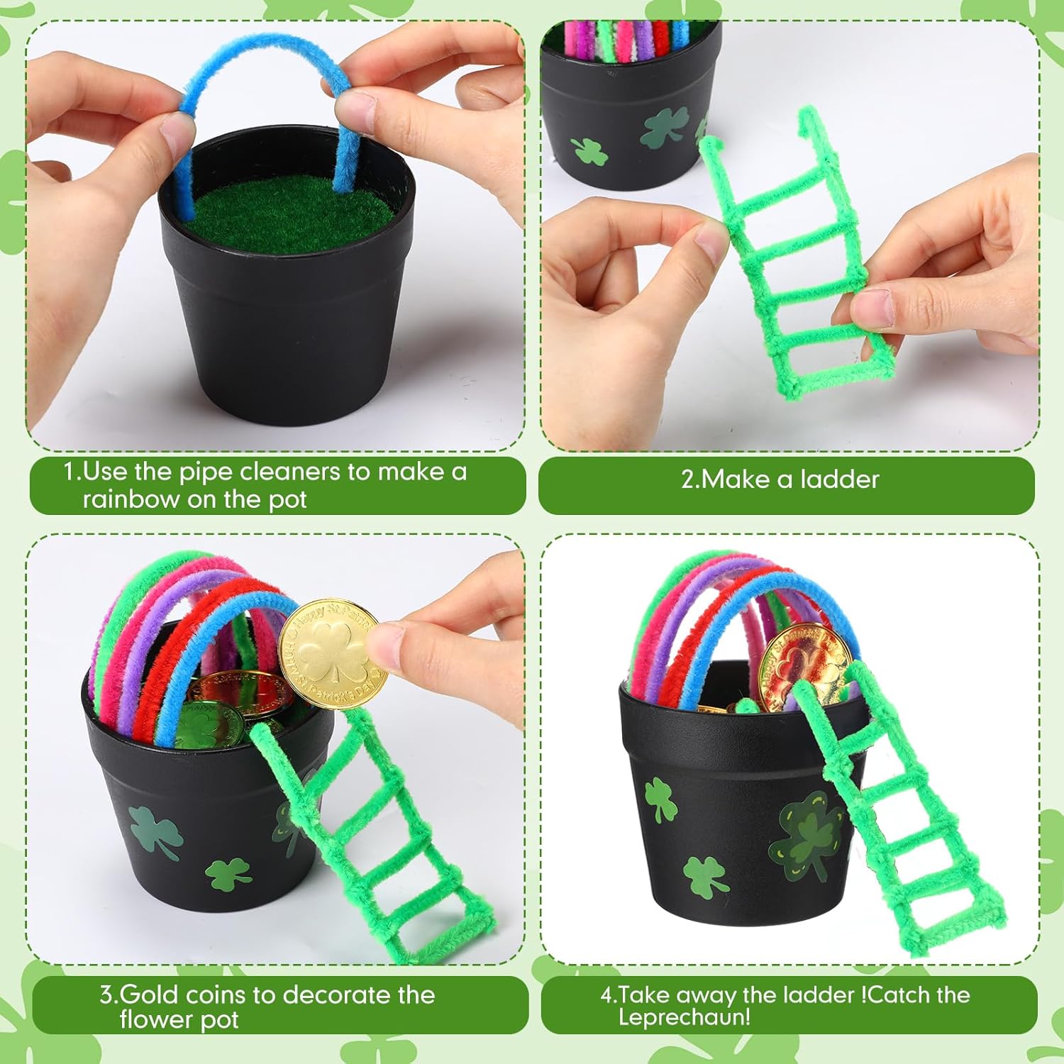 | Included Components | pots (plastic, foam), gold coins (plastic, 60 gold, 60 green), twist sticks (fluff, wire), shamrock stickers (self-adhesive), instruction booklet |