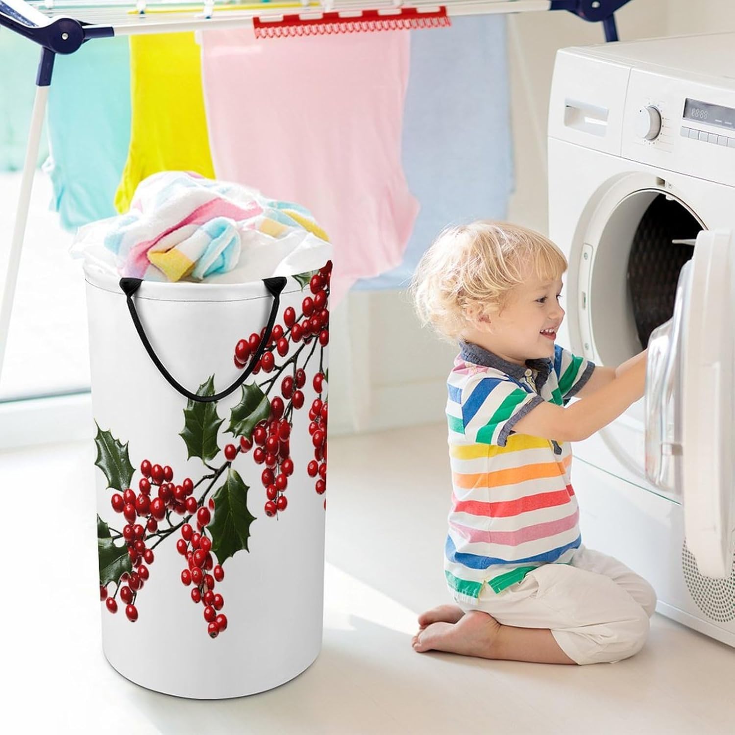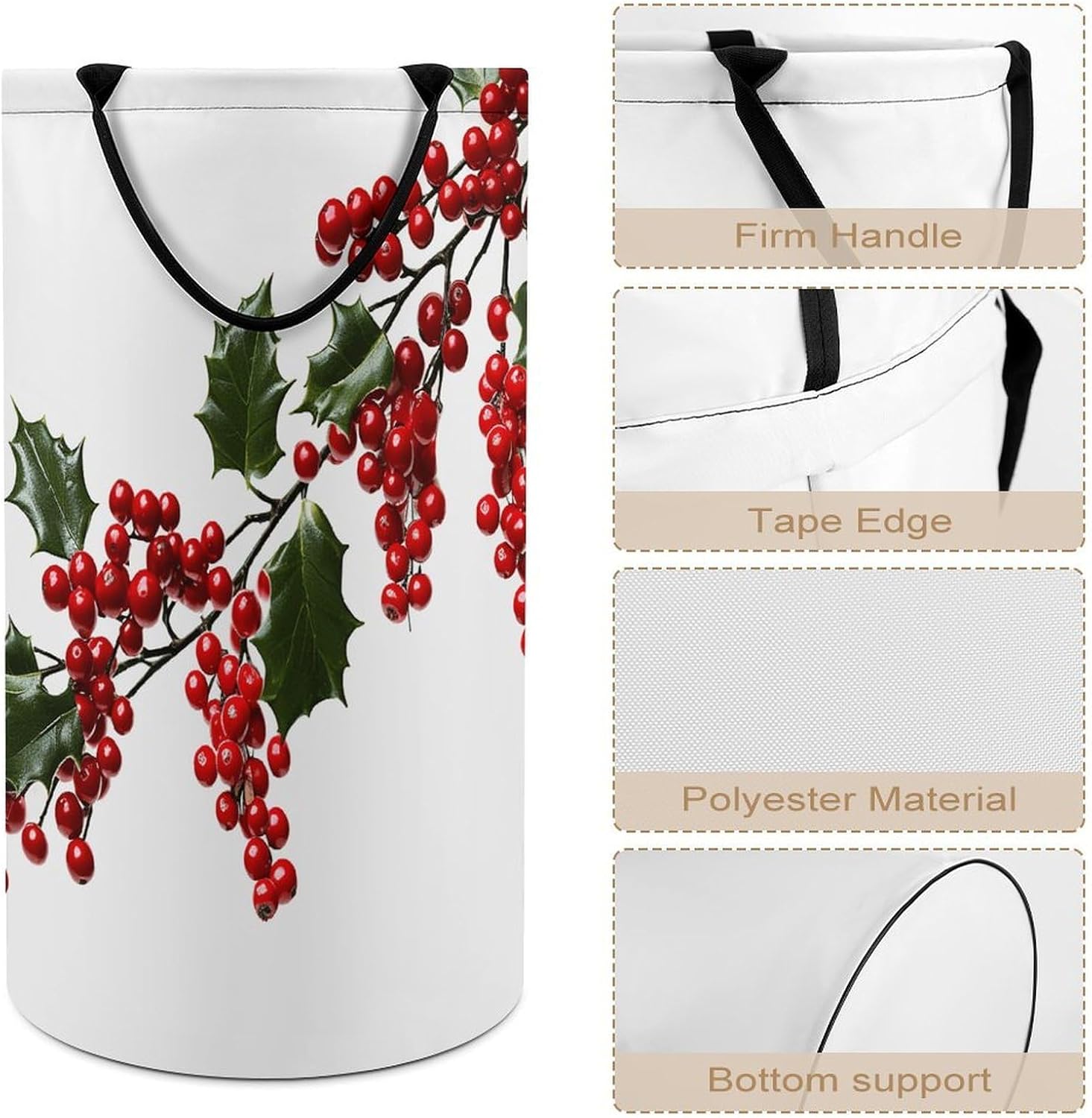 The pattern of the Holly Berry Branches hamper is printed with exquisite patterns, which makes the product more attractive.Chic design allows it to be used in the living room to hold throw blanket, pillows, and reading materials, as well as in the bathroom for towels, or as a laundry hamper.The laundry hamper adopted collapsible design, equipped with handles. It is lightweight and portable for using, storing, and moving conveniently.Holly Berry Branches Clothes hamper is suitable to store dirty clothes washing, place in the room to store toys, and other household goods, keep the house clean and tidy. Perfect laundry hamper for home, office, closet organizer, bedroom, bathroom, college dorm, etc.Gets out of your way when you need it to. This storage basket or laundry hamper is a good gift, which not only meets everyday storage needs but also carries deep care and love, a perfect way to turn thoughtfulness into warmth.