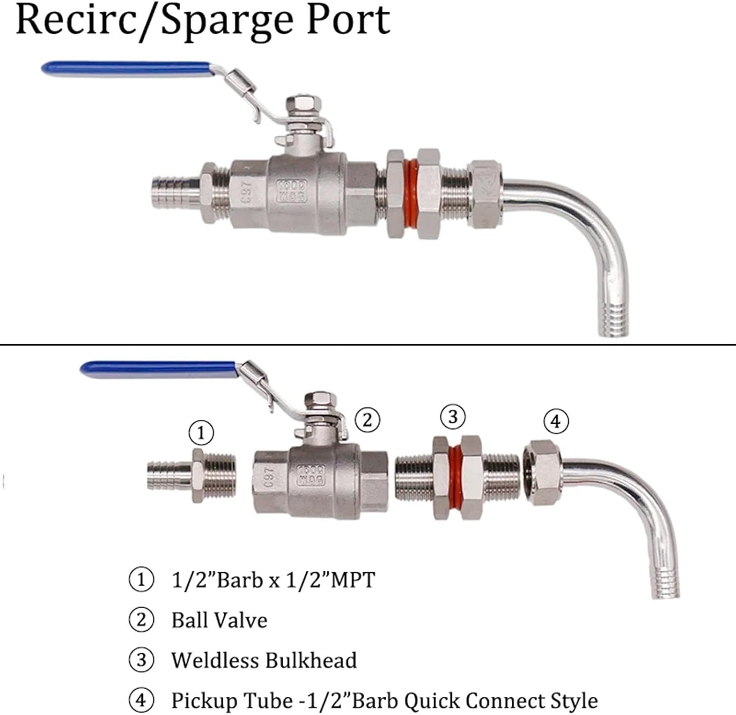 Mash Tun(MT) Conversion Kit- Hose BarbStyleThe mash tun is where you add the grain to the strike water, on a HERMS system you will recirculate the mash through the HLT to maintain temp. At the end of the mash you'll sparge with clean water from the HLT to ensure you get all the sugar from the grain.The brew kettle/pot in the picture is virtual and only shows how to use it. You need to buy a brew kettle/pot separately.In this conversion kit, it include the follwoing three parts:1. Recirc/Sparge PortUsed to recirculate wort to keep even temperature and increase efficency during mash. Used to rinse wort during sparge.2. Drain Port.Our unique pickup tube to drain wort off kettle bottom.3. Temperature Port.To moniter the temperature of the wort.You also need a False Bottom for the Mash Tun. We accept custom size False Bottom. Please feel free to contact us to get the qutoe of the false bottom.==========Product Type : Brew Pots & Kettles**Purchase Notes***Because it is manual measurement, please allow 1-3% error and make sure not to mind ordering.*Product photos are taken in kind, because the light is different from the display, so the color may be different. The product will be subject to the actual product received.