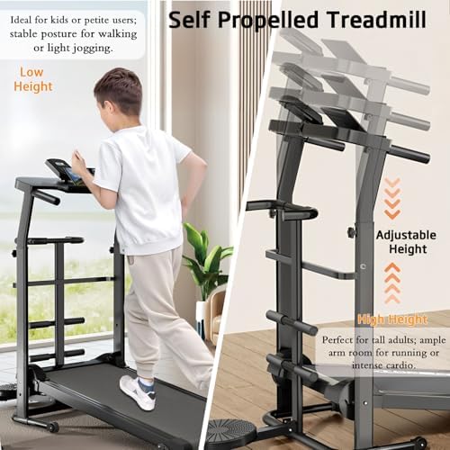 Experience a new level of home fitness with our versatile 3-in-1 Walking Pad Treadmill, designed to enhance your workout routine. This innovative self-propelled treadmill allows you to effortlessly switch between three exercise modes: steady walking, comfortable jogging, and energetic running. With a 12% incline feature, you can elevate your workout intensity and maximize calorie burn. Our user-friendly LED display provides real-time tracking of your workout progress, including time, distance, speed, and calories burned. Stay motivated while enjoying a quiet workout environment, as this treadmill operates under 45 dB, making it perfect for home use without disturbing others. Ready to use right out of the box, our non-motorized treadmill requires no assembly tools, allowing you to start your fitness journey immediately. When you're done, the compact, foldable design and built-in transport wheels make storage a breeze, easily fitting under your bed or sofa. With dimensions of 45.7 inches in length, 21.6 inches in width, and 43.3 inches in height, this lightweight treadmill is ideal for any home space. The package includes everything you need for a complete workout: the foldable treadmill with incline, an anti-slip carpet, a folding waist twister, and a pull rope. Elevate your fitness routine today with our Walking Pad Treadmill and enjoy the convenience of a gym-quality workout from the comfort of your home!