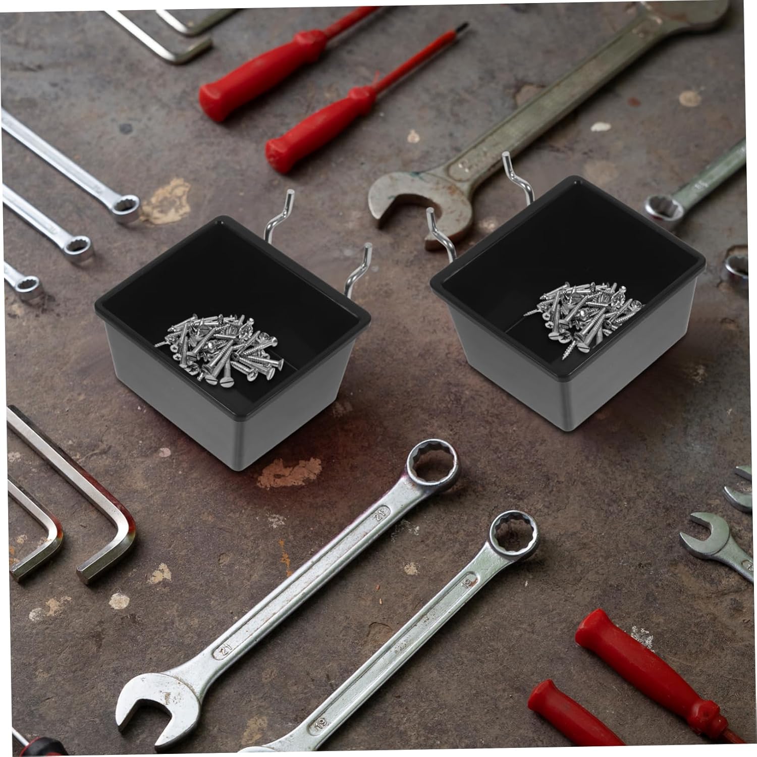 Package List 20 x tools boxes Features -Color:Black utility bins -Material:Iron, ABS pegboard bin for store -Size:9.20X8.20X5.00cm/3.62X3.22X1.97in shop pegboard bins - Proper for rearranging the layout on pegboard and organizing many other things, offer you great convenience garage pegboard bins. - Compact size, simple but sturdy structure, not easy to deform or break, for you to use the peg board bin with peace of mind garage pegboard bin. - Simple color, the pegboard bin can be used for manage, organize and also for display, meet your requirements pegboard hanging bins. - for standard peg board, with strong bearing capacity, the pegboard storage bin is easy to install or remove to save your time and efforts peg board tool storage. - Sturdy material with detailed workmanship, this pegboard bin is safe and can be used for long time peg board bin for shop.Goods Informationpegboard wall organiser Adopting sturdy materials with workmanship, this peg board bin is of high hardness, can be used for long period.peg board bins Strong bearing capacity, the pegboard bin is a helper to manage, organize or display items at home, in the shop or garage.garage pegboard bin Are you looking for a simpler store small items? This pegboard bin can meet your needs