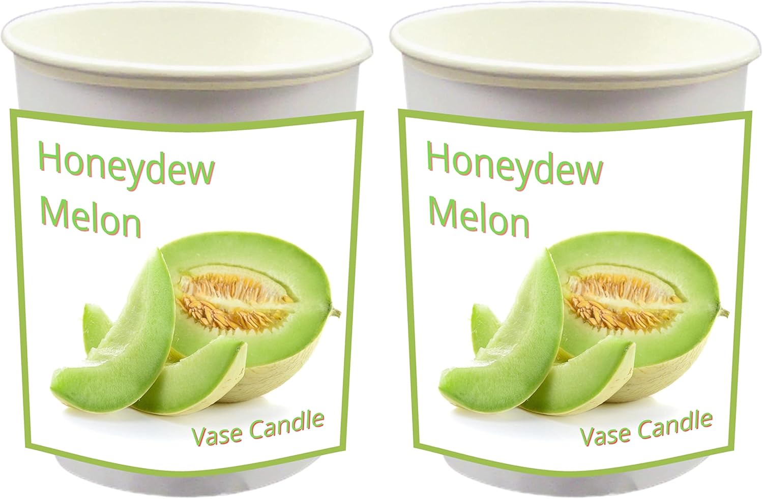 Honeydew Melon - Fresh cucumber carefully mixed with sweet juicy melon to create a delightful honeydew aroma.Clear Vase Dish Set 1 refillable Clear Glass Satin Vase and 1 Clear Glass Satin Dish - each one unique. Our vases average between 5" to 7" tall and can be as wide as 5" at the top and 2" at the bottom. The dishes are between 8" and 9" across and no more than 4" tall. Our Clear Vases and Dishes are made from regular window glass with a high silica content. Very elegant and tough - great as a daily burner. 2 Candle Refills with a 50 hour Burn Time each | Total of 100 hour burn time. Each Vase Candle Refill | 6 oz | 50 Hour Burn Time | 2.5" width x 3.8" height. The Candles and Melts are fresh and poured to order with fragrance all the way through the creamy, soft, uncolored paraffin/soy blend wax for excellent throw and clean-up. We use a Self-Trimming, Paper Core Wick, premium fragrances, and uncolored wax so that nothing gets in the way of a clean burn. No Coloring Added - the Wax is a Natural Creamy White Color.