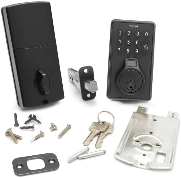 Experience keyless convenience with Honeywell's Biometric Deadbolt lock, unlocking your door with just a touch of your fingerprint. Enjoy secure entry, an illuminated soft touch keypad, and 50 programmable fingerprint and ID codes for personalized access control. Customize settings and manage codes easily. A hidden emergency key provides backup, while bump protection enhances security. The sleek Matte Black finish complements modern, traditional, and craftsman-style homes.