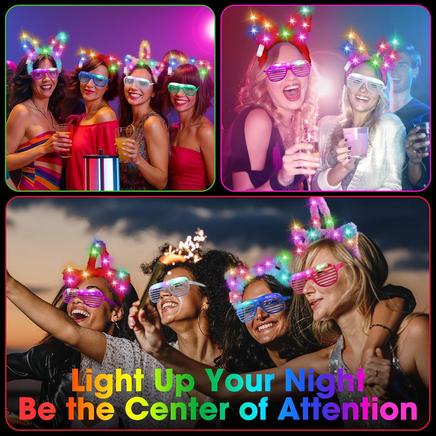 | Included Components | 10 x LED cat ears headband, 10 x LED rabbit ears headband, 10 x LED unicorn headband, 20 Pairs LED glasses |