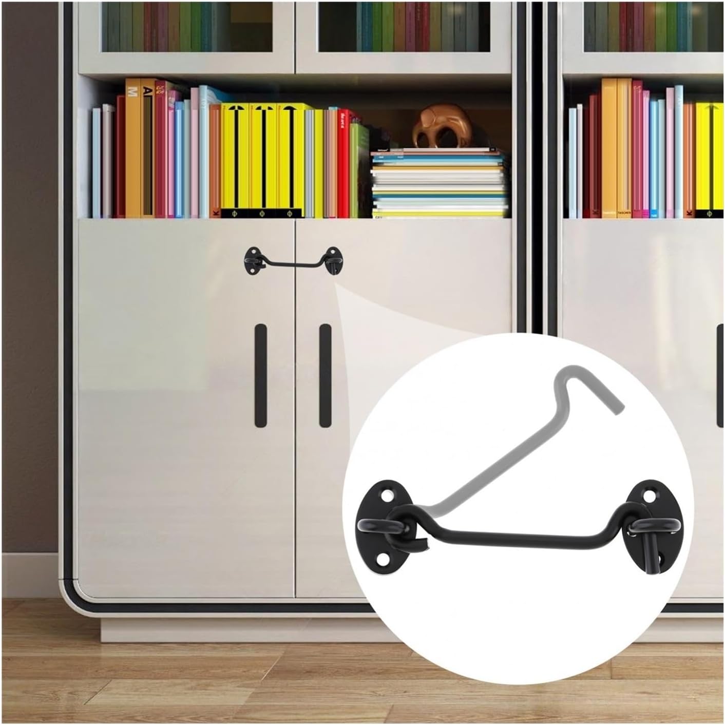 Product Name: Hook-Eye Lock Windproof HookMaterial: Stainless SteelColor: BlackApplications:- Cabin Doors, Swing Windows, Sliding Barn Doors, Garages, Shutters, Cabinets, Closets, Doors, Cabinets, etc.Product Weight: 103 g/3.63 ozProduct Dimensions (L*W*H): 215*40*22 mm/8.46*1.57*0.87 inchPackage Included:1 x Latch4 x ScrewsType: Curtain RodType: Curtain Hardware