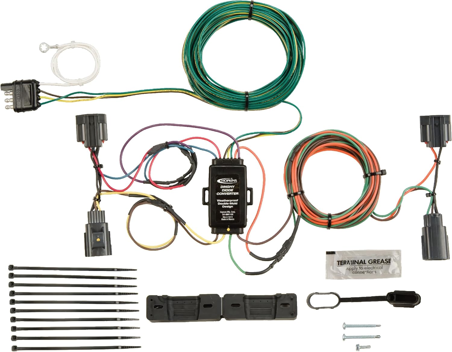 As the number one brand in towing electrical products, Hopkins Towing Solutions has provided consumers with innovation, durability, and performance for over twenty years. Hopkins' Plug-In Simple Towed Vehicle Wiring Kits plug directly into the vehicle's original equipment harness with no cutting or splicing required, making installation quick and easy. This kit operates the tail, brake, and turn signal lights of the towed vehicle, adding safety and driver awareness and also protects your motorhome by isolating the towed vehicle with integrated diodes. Mounting bracket and all necessary accessories included, with a wide range of applications available. Fit vehicle - JEEP - Wrangler - 2007 - 2017, Wrangler(with tow package)2007 - 2017