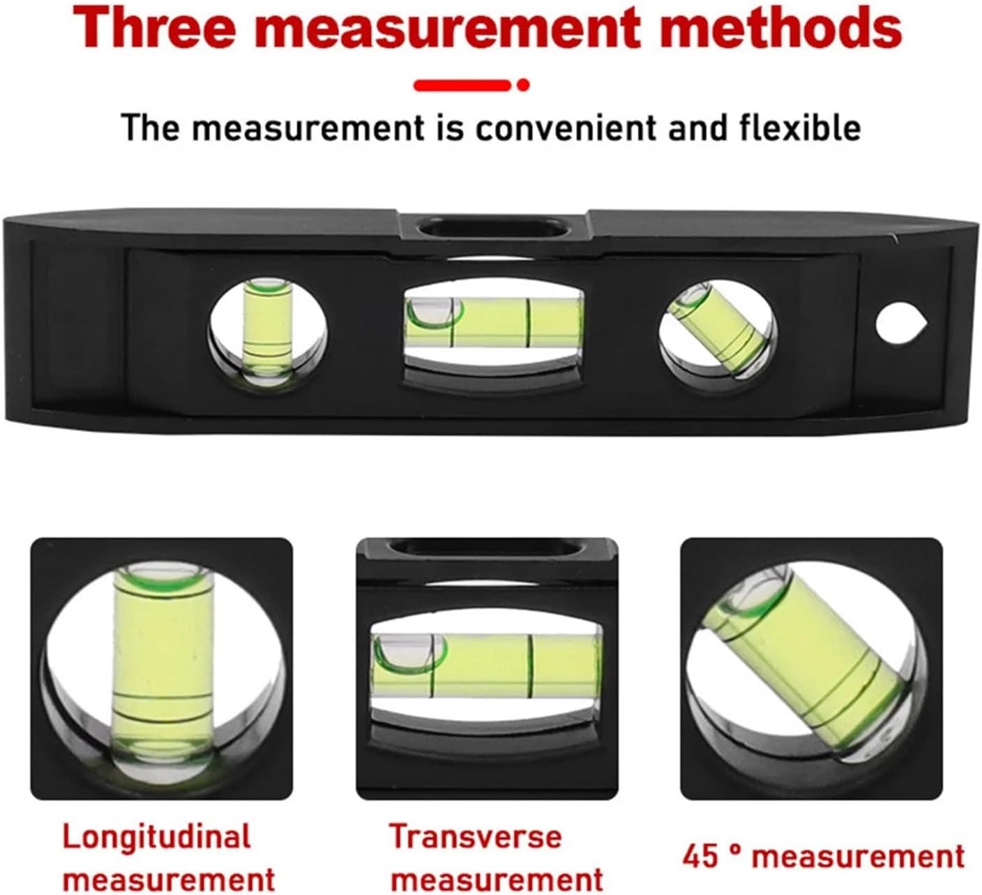 Features:Made of high-quality materials, durable.6-inch magnetic level, multi-function level measuring ruler, level measuring tool.Fine workmanship, practical and beautiful; high precision, easy to use, fast and accurate.The product has a wide range of applications, which can make the adjustment of the items you frequently use more convenient, more accurate angles, and better positioning of your life and space.Specifications:Material: black ABS shell + transparent acrylic horizontal bubble tubeSize: The total length is about 152mmPackage Contents:1 * Level measuring tool