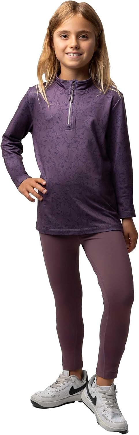 This shirt combines fun style with functional performance. The Horze Pegasus Kids Winter Training Shirt is designed in a super cool Pegasus print, this quarter-zip top offers insulating warmth with a soft brushed interior while remaining breathable for active wear. The stretchy fabric provides all-day comfort and freedom of movement, while the easy-care design makes it practical for everyday use.