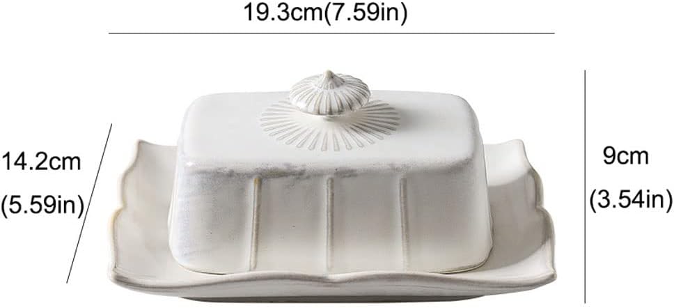 Product Name: Ceramic Butter Dish Product weight: 550kg Material: Ceramic Size: 19.3*14.2*9cm/7.59*5.59*3.54(inch) Product can be reused Notice: Items other than the main product shown in the main image are for demonstration only and do not include other items. Due to different lighting display and personal colors there will be color difference between the real object and the photo please refer to the real object The above data is for reference only the size is measured manually each variable may be different please refer to the actual product thank you. If you find any problem with our products please feel free to contact us by email we will solve the problem as soon as possible.