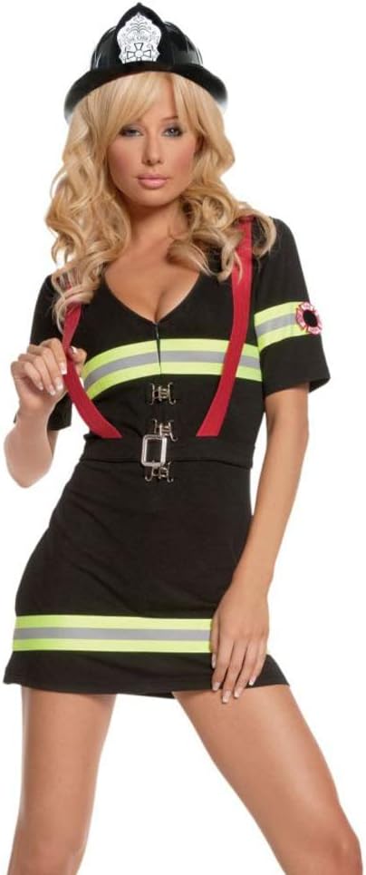 You're sure to be the hit of the Halloween, Costume, Holiday, or Christmas Party with this Sexy Ms. Blazin' Hot Firefighter Adult Roleplay Costume, Large, Black - 2 pc. costume includes dress and belt with attached suspenders. This item is also great for Plays, Theatre, Cosplay, Roleplay, and Fantasy fulfillment. Available in multiple sizes. Hat (search UPC# 0616174090534) NOT included, sold separately.