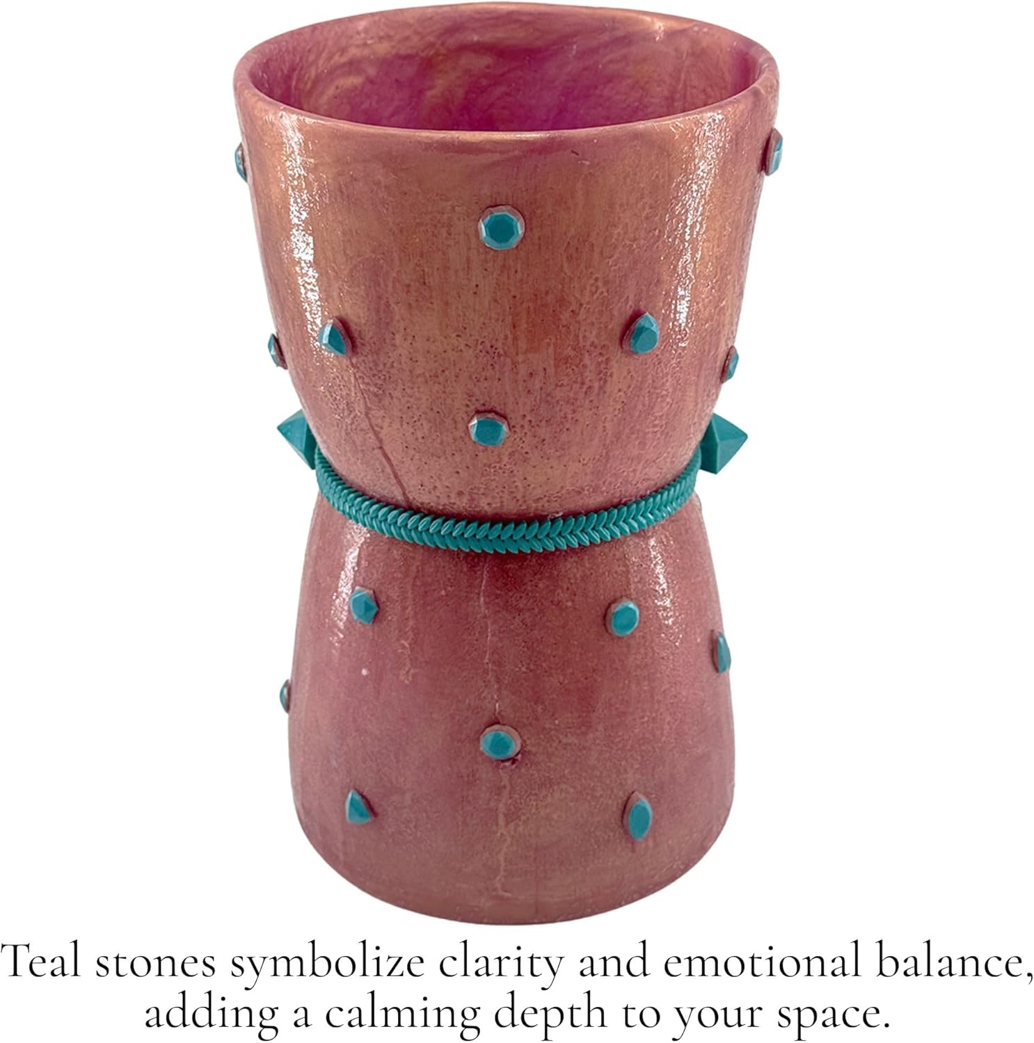 | Color | Rose Gold Hour Glass Shape Vase With Teal Stone Accents |