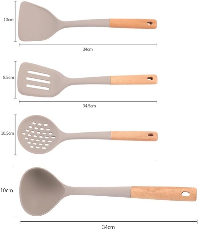 : Spoon and spatula setMaterial: Silicone nylon + beech woodSize: As shownColor: As shownFunctions: Cooking, bakingThe set includes: Frying spatula, soup spoon, ladle, salad spoon, etcCrossbody bag:Shovel and spoon set *1 set(Excluding display items)Attention:1. Due to manual measurement, please allow 1-2cm error. Please understand,Thank you2. The actual color of the product may be slightly different from the color shown in the picture. please refer to the actual productInvesting in a handy set of spatulas can significantly enhance the smoothness and enjoyment of cooking.