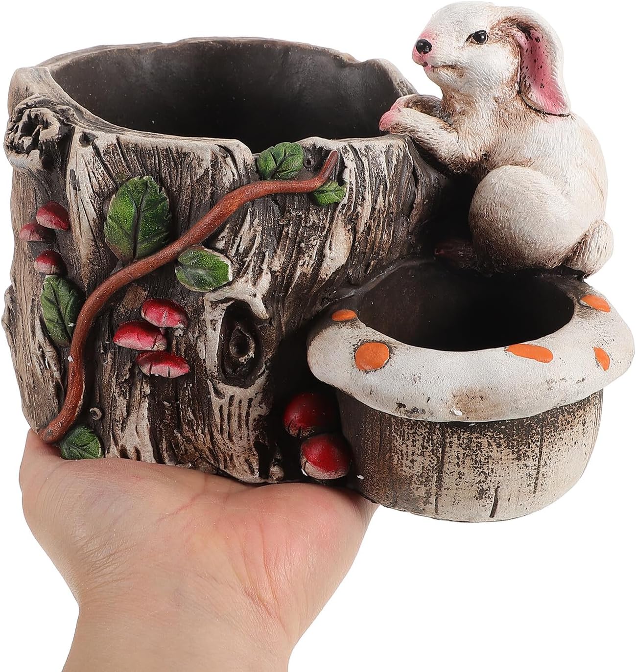 Package Include 1 x planter Characteristics -Product Info:Double mouth rabbit flower pot -Material:Cement -Size:22.00X15.00X13.50cm/8.65X5.89X5.31in -Color:Multi - The planting pot is versatile, which can not only work as flower pot, but also serve as a decoration cement planter. - Good breathable and permeable to keep your plants healthy, and improving survival rate multi-use flower planter. - The succulent pot is perfectly suitable for indoor, outdoor, garden, courtyard, courtyard cement flower pot. - The succulent flower pot made of durable and stable cement is and safe to use creative planting pot. - Creative design not only highlights the retro fashion trend, but also the imitation wood texture blends with the plant itself cement succulent planter.Goods Descriptionvintage cement planter Looking for a creative flowerpot? This is a kind of succulent flowerpot, using cement material, durable and practical.decorative cement planter Easily match your variety of plants and flowers to bring some nature to any interior space.creative flower planter Can be a great gift for your friends who like planting