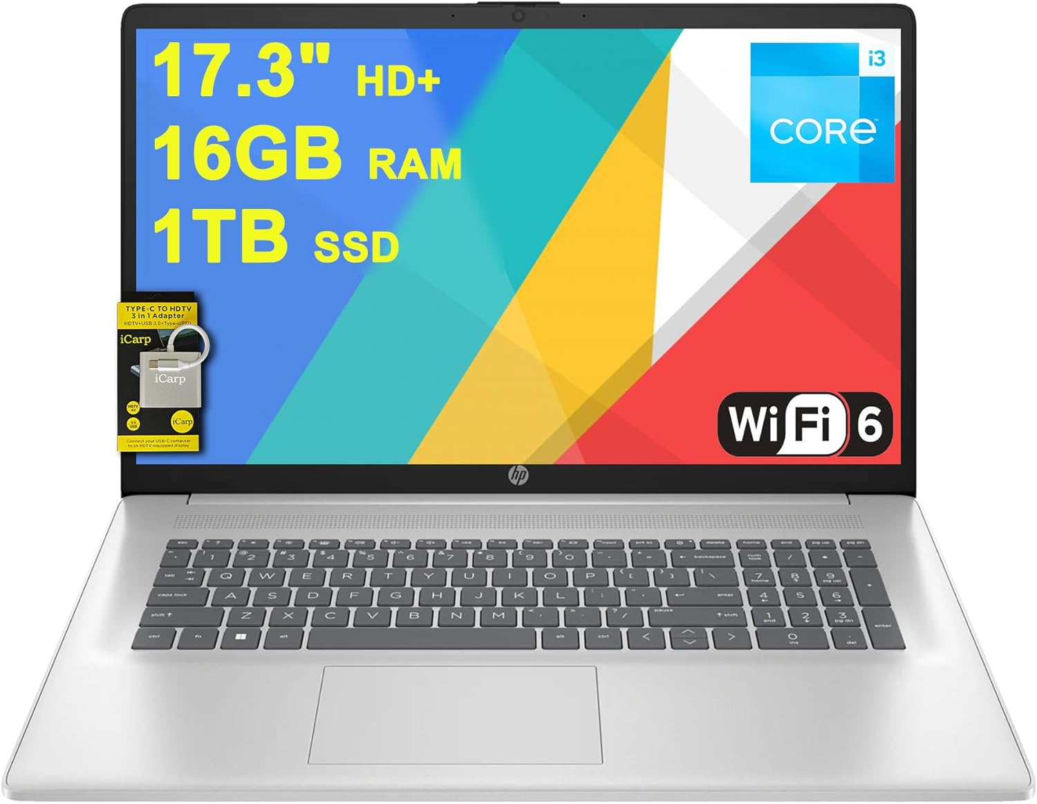 OVERVIEW: Product Details: Microprocessor: Intel 8-core i3-N305 Processor (Max Boost Clock Up to 3.8GHz, 6MB SmartCache, 8 Threads) Memory:16GB RAM Storage:512GB SSD Operating system: Microsoft Windows 11 Professional Graphics & Video: 17.3" HD+ (1600 x 900) Anti-Glare Integrated Intel UHD Graphics Key Features: Wi-Fi 6: Yes Privacy Camera: Yes Backlit Keyboard: No Fingerprint Reader: No Ports: 2 x SuperSpeed USB-A 1 x SuperSpeed Type-C, 1 x HDMI 1.4b Battery: 41Wh Additional Information: Dimension: 10.15" x 15.78" x 0.78" Weight: 4.6 lbs