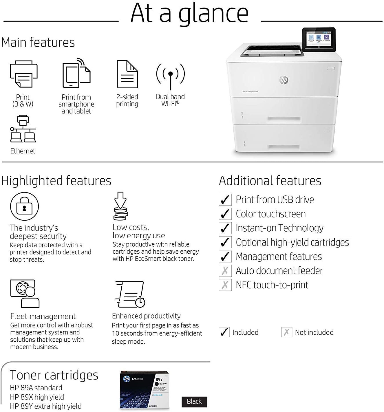 HP LaserJet Enterprise M507dn – high-performance monochrome laser printer built for busy offices. Delivers up to 45 ppm with crisp 1200×1200 dpi duplex printing. Robust security via HP Sure Start, gigabit Ethernet, USB, and optional Wi‑Fi. 650-sheet capacity, energy‑efficient, and durable—ideal for heavy monthly print volumes. Renewed/refurbished with starter toner