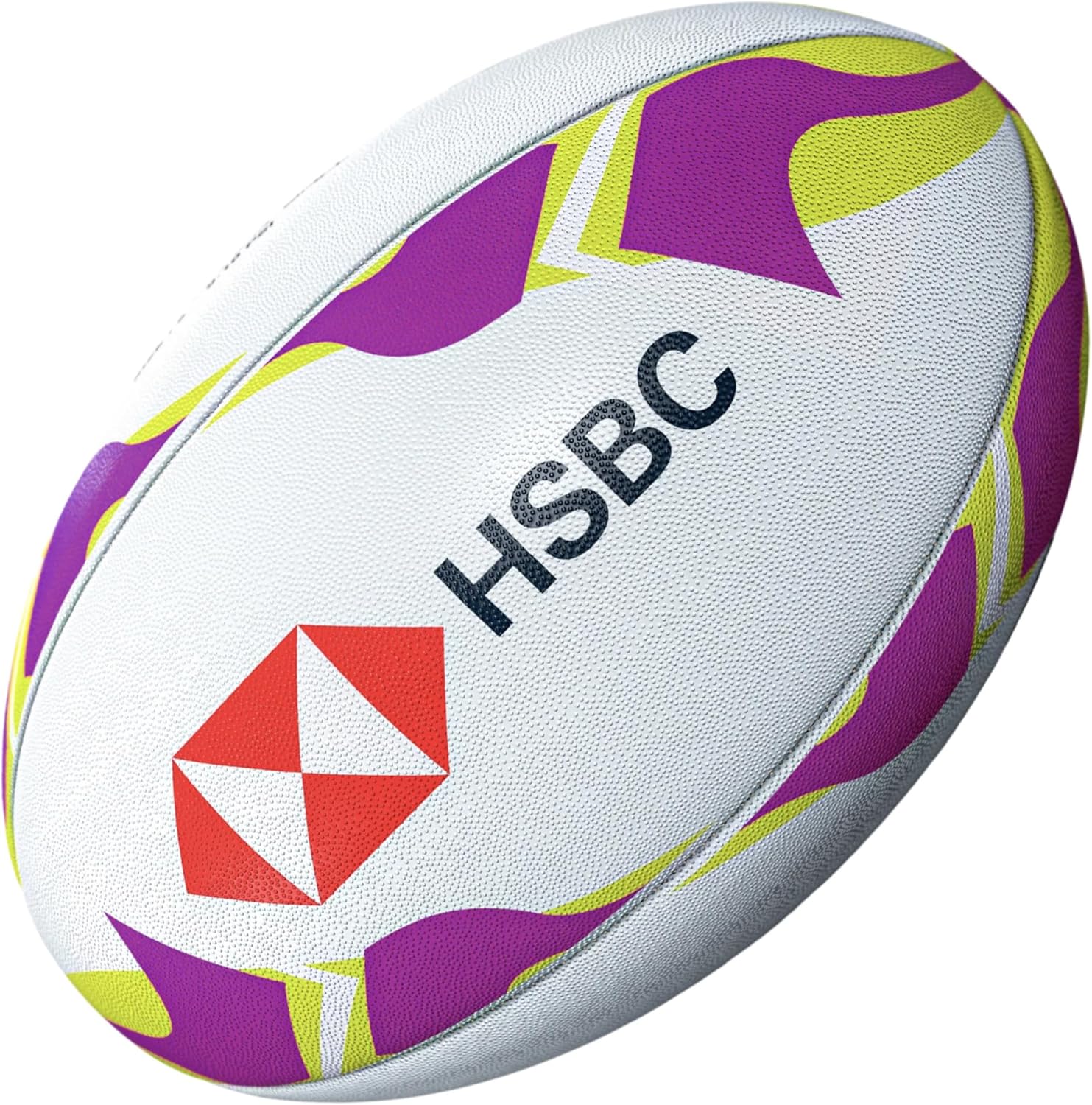 The HSBC World Sevens Series, a global 7s rugby spectacle, brings thrilling action to stunning locations worldwide. Each tournament boasts an electric atmosphere, fast-paced gameplay, and enthusiastic crowds. This year, we're excited to introduce unique HSBC SVNS balls for each location, exclusively online! Presenting the HSBC SVNS BALL! Its grippy rubber surface lets you practice fast drills at home, while the 3-ply backing ensures durability. This high-quality, hand-stitched ball features a synthetic latex bladder for excellent air retention. The replica ball's vibrant, geometric design makes it perfect for dedicated rugby fans. Get yours now in size 5 or mini!