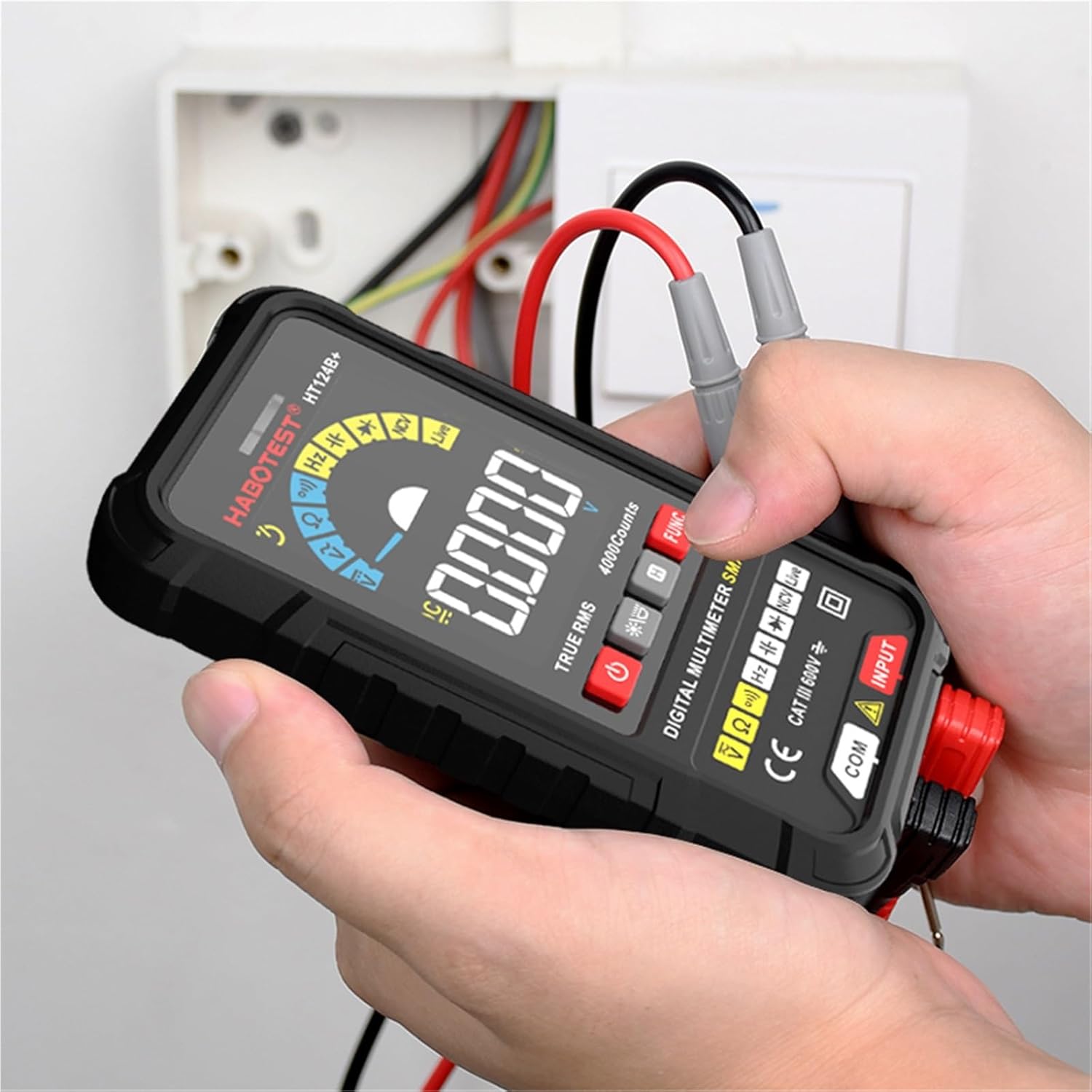 Multi TestersModel Number : HT124B+Place of Origin : Guangdong, ChinaApplication : Industrial Use, Household UseDimensions : 127X66X19mmFeature : StandardLow Battery Indicator : YesMaterial : ABSMax. AC Current : N/AMax. AC Voltage : 600VMax. DC Current : N/AMax. DC Voltage : 600 VMeasuring Capacitance Range : N/AMeasuring Inductance Range : NAMeasuring Resistance Range : 0~40MOperating Temperature : 10-50 °CFrequency : 0~4MHzCounts : 4000 CountsAuto / Manual Range : Auto RangeSmart Function : YESNCV : YESTrue RMS : YESLive Test : YESContinuity Test : YESDisplay Type : TNData Hold : YES