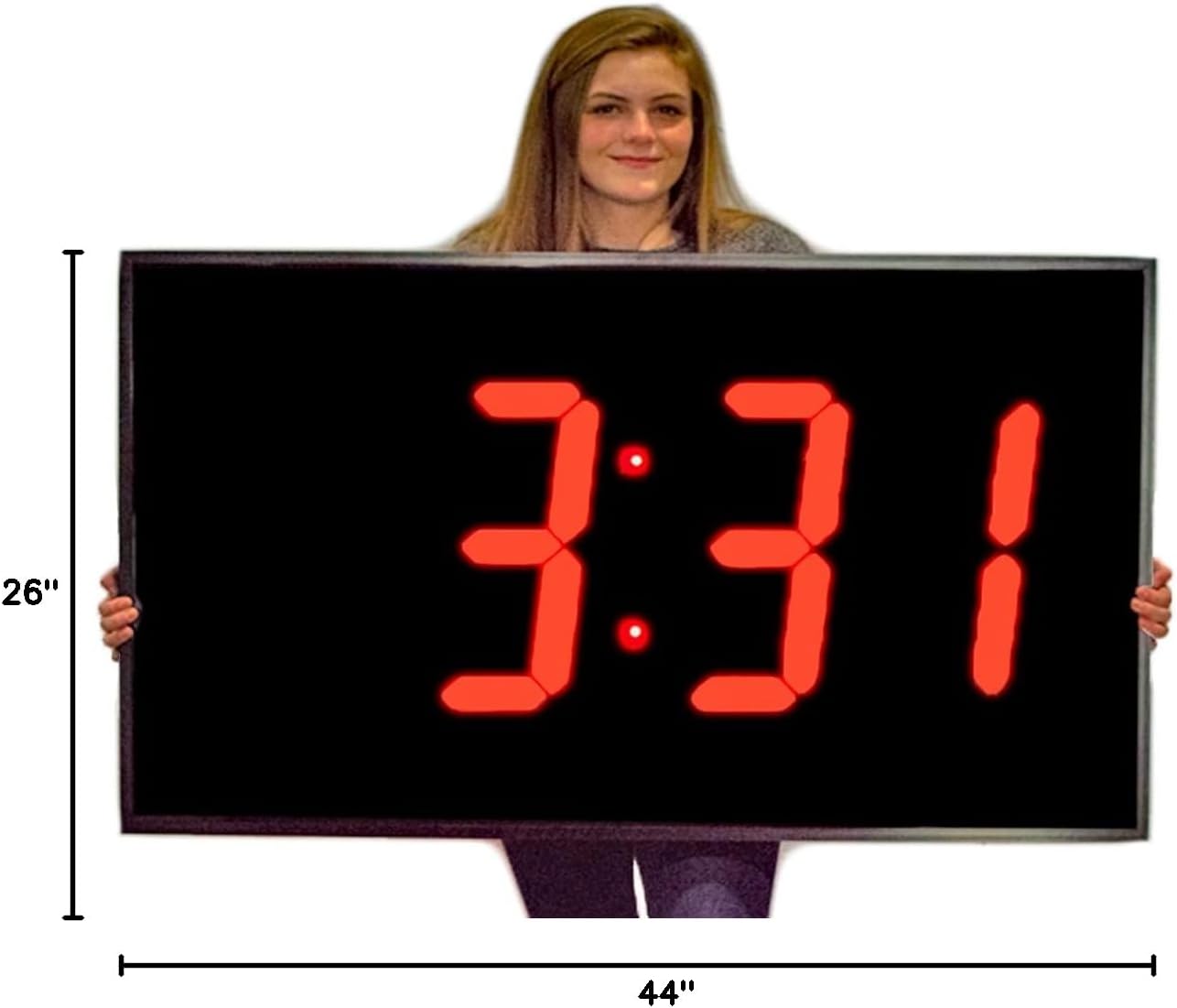 Perfect for any facility! These super bright LED's can be seen from hundreds of feet away! Great for factories, gyms, cafeterias, warehouses, shopping malls or anywhere a giant clock is needed. Almost 4 feet wide and 2 feet tall. Comes with a remote control for setting them time. 12/24 hour format.