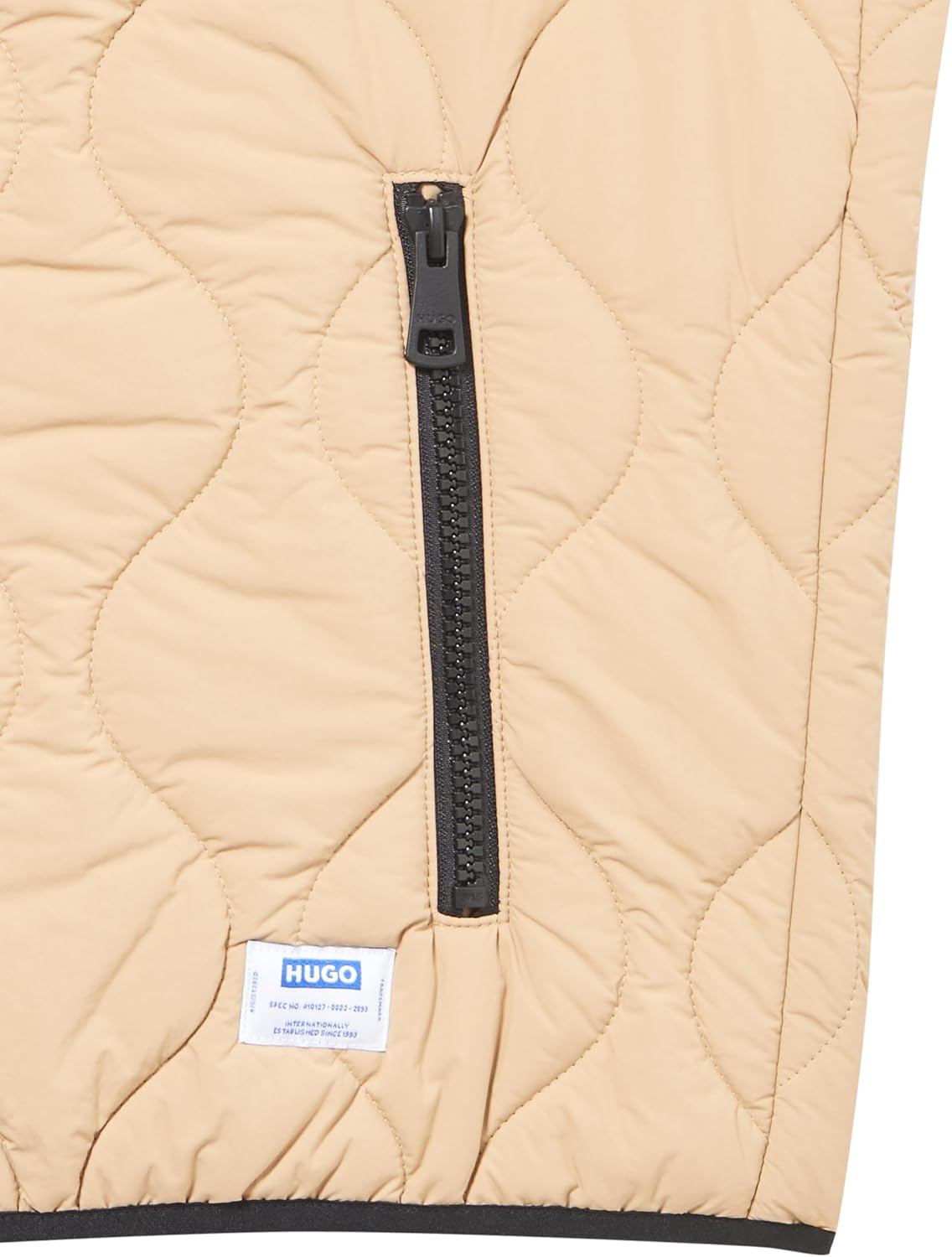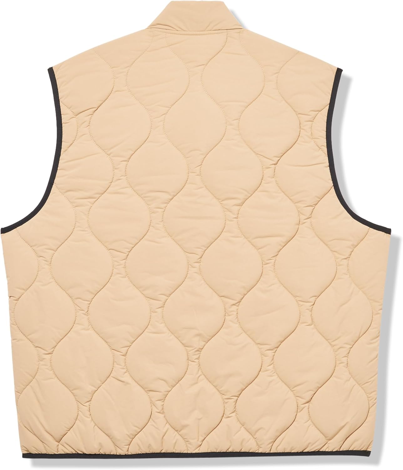 A water-repellent quilted puffer vest cut to a slim fit and crafted in a light crinkle nylon fabric. This lightweight vest is detailed with zipper slash pockets on the front, a padded stand up collar, and a small woven branded patch on the bottom left.