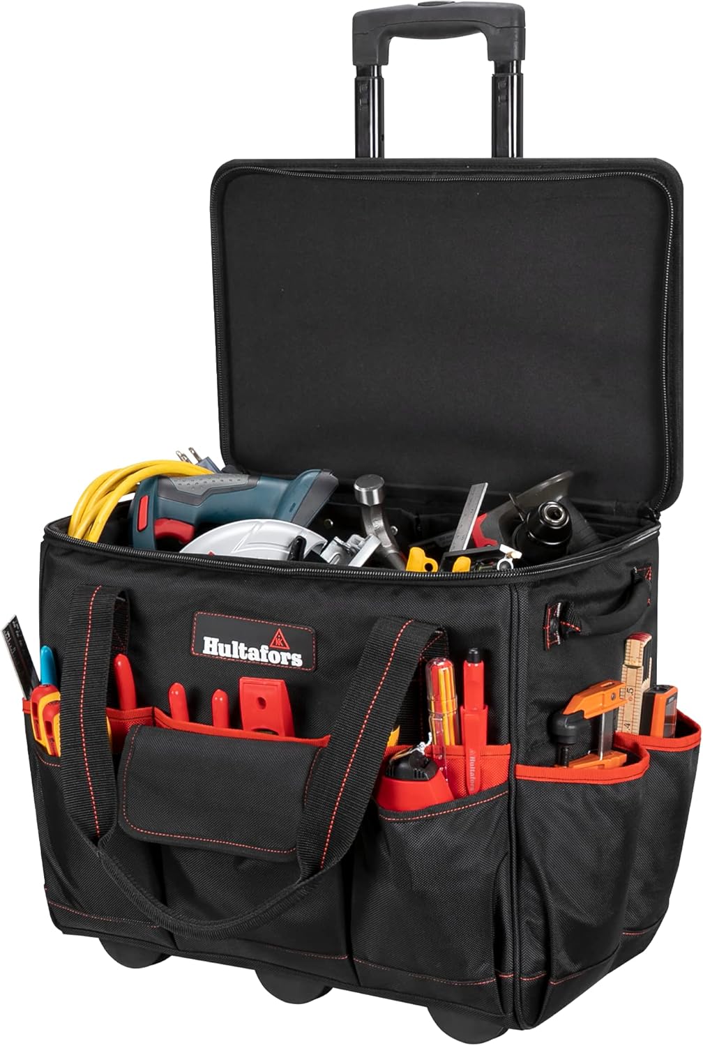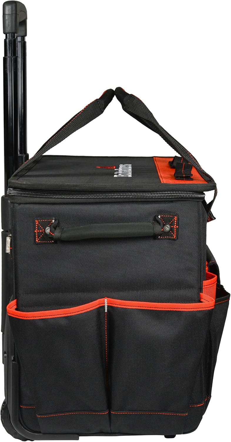 Versatile bag with robust threaded wheels that allows for easy transportation of your power tools and accessories over almost any terrain. Perfect for any job site, the large, sturdy telescoping handle extends for fast transport of heavy loads.