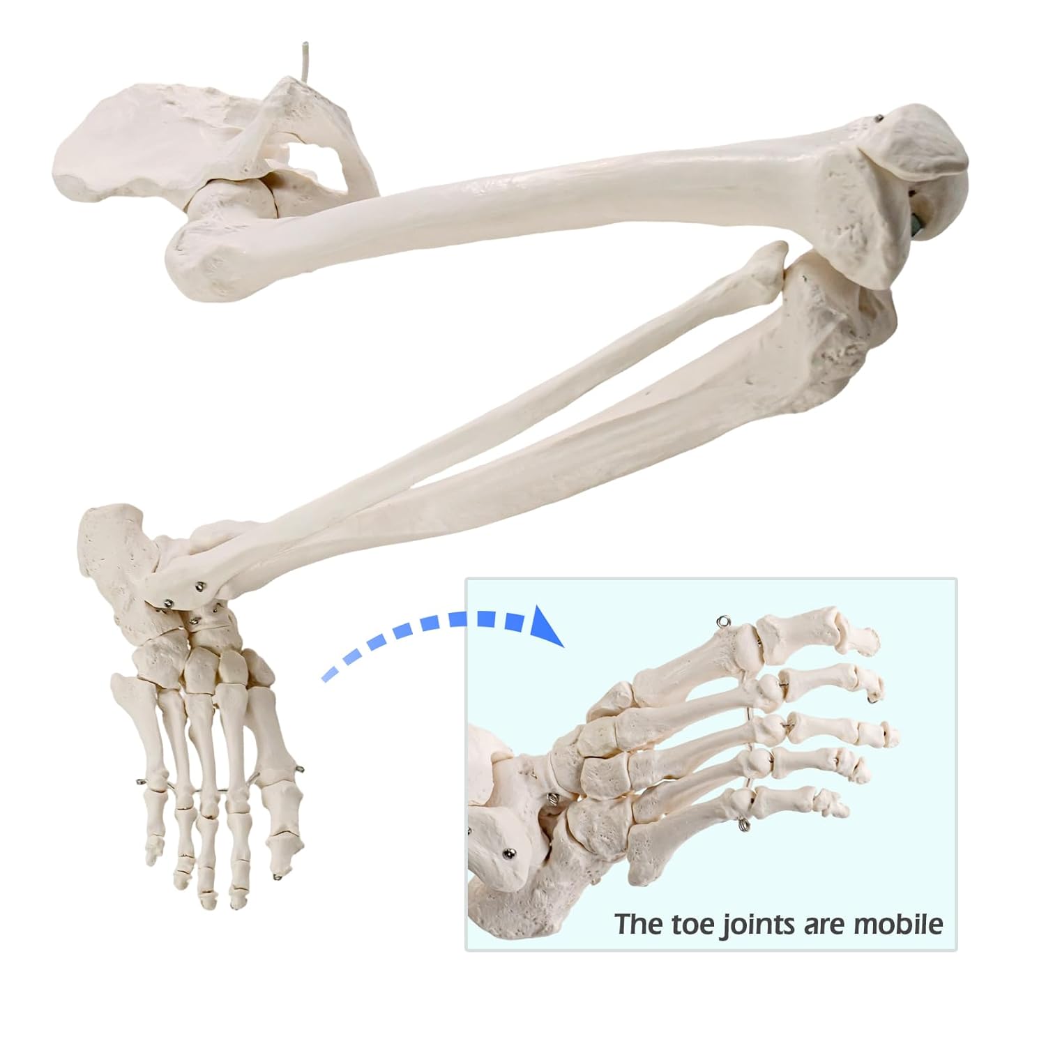 Merinden Life-Size Lower Limb Bone Model (36"), Full Leg Skeleton with Detachable Hip Joint & Fully Articulated Foot, Showing Pelvis, Femur, Tibia/Fibula & Articulated Ankle for Anatomy Teaching Provide students and patients with a clear, hands-on view of lower limb skeletal anatomy using this Life-Size (36") Lower Limb Bone Model. The model contains every major bone of the leg - pelvis section, femur, patella, tibia, fibula, and a fully articulated foot with individual tarsals, metatarsals and phalanges - assembled to reflect accurate anatomical relationships and joint mechanics. Designed for educators, physical therapists, medical and nursing students, sports medicine practitioners, and anatomy labs, the model offers modular functionality: the hip joint detaches for detailed study of the acetabulum and femoral head, while the articulated foot demonstrates realistic ankle and toe movement. Durable connectors and secure fastenings make it suitable for frequent classroom use, demonstrations, or patient consultations.