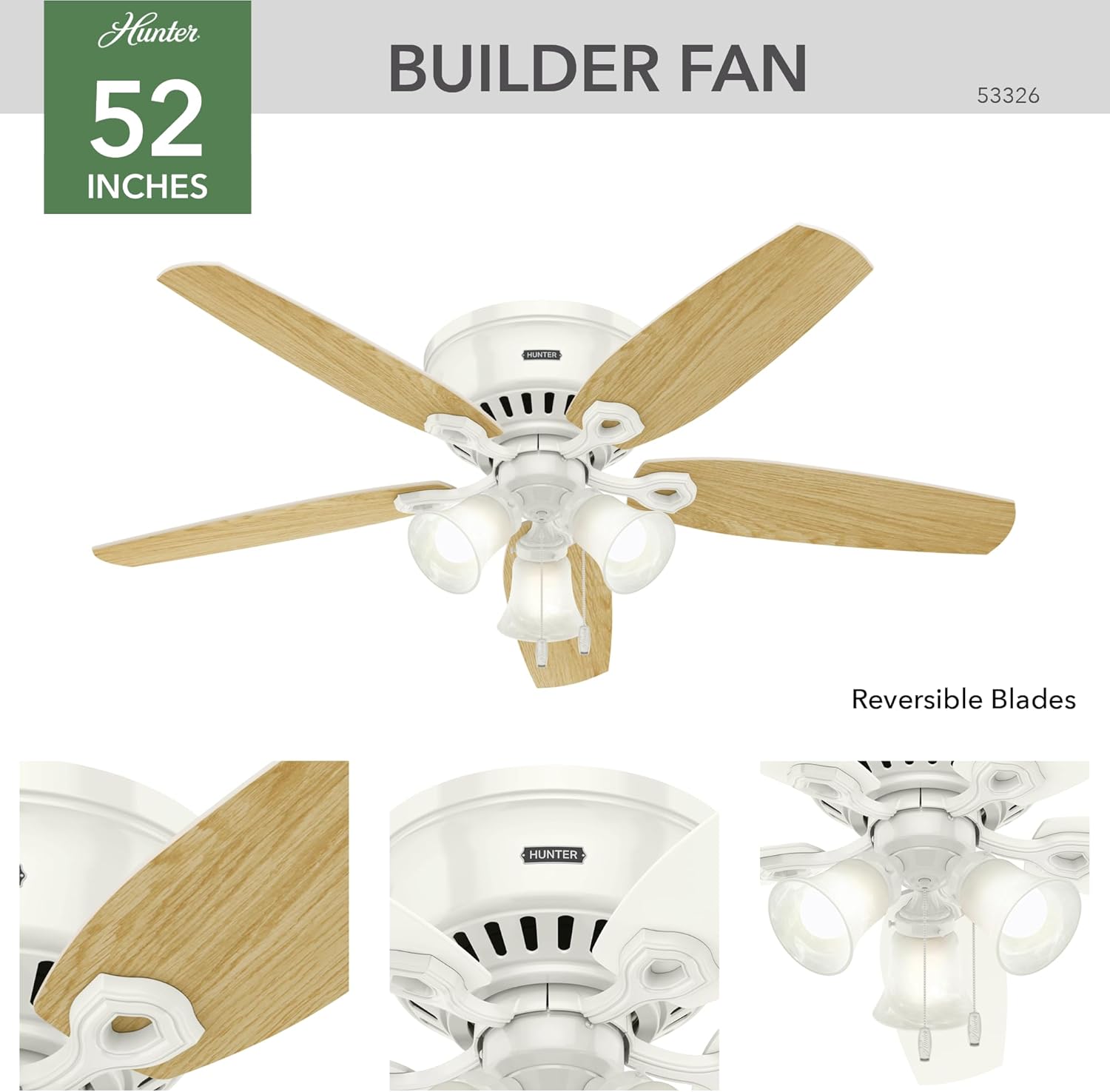 | Item Type Name | Hunter Fan Company 53326 52" Builder Low Profile Ceiling Fan with Light, Snow White |