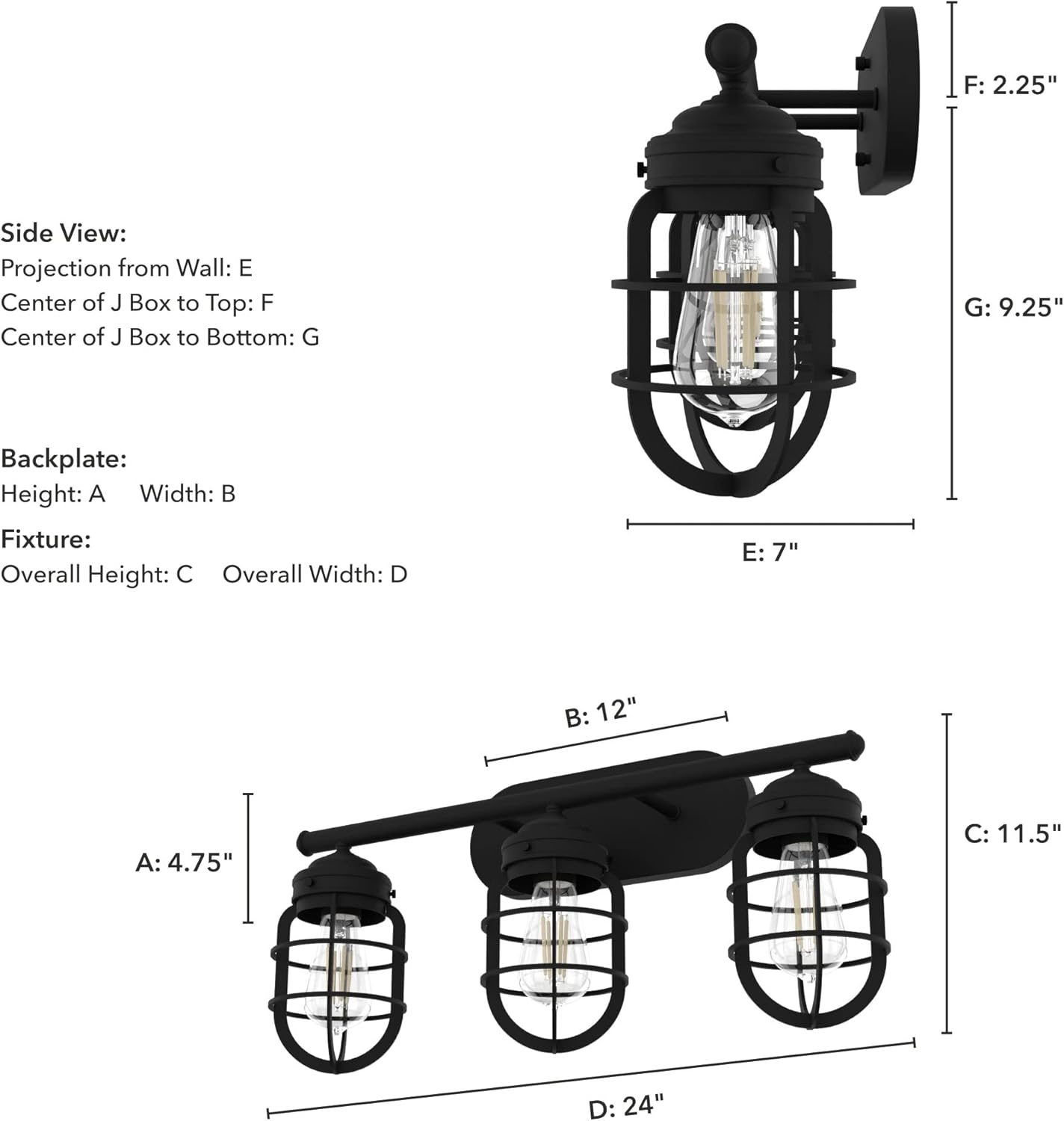 Turn-of-the-century inspiration with modern influences. The Starklake vanity light with caged shades stands out in modern industrial and farmhouse style bathrooms. Balancing industrial detailing with timeless design, the warehouse-inspired caged light elevates your space. This lighting will reflect your happiness and light up your life. Mix and match with other fixtures from this collection or from our ceiling fan designs.