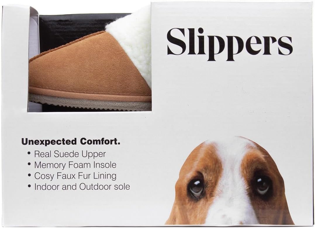 The tan. snug Arianna slippers from Hush Puppies have a super soft suede upper. a warm. fluffy white lining and a textured rubber outsole for added grip. These cosy open-backed mules invite you for an evening in and are ideal as a present for the cold winter days.