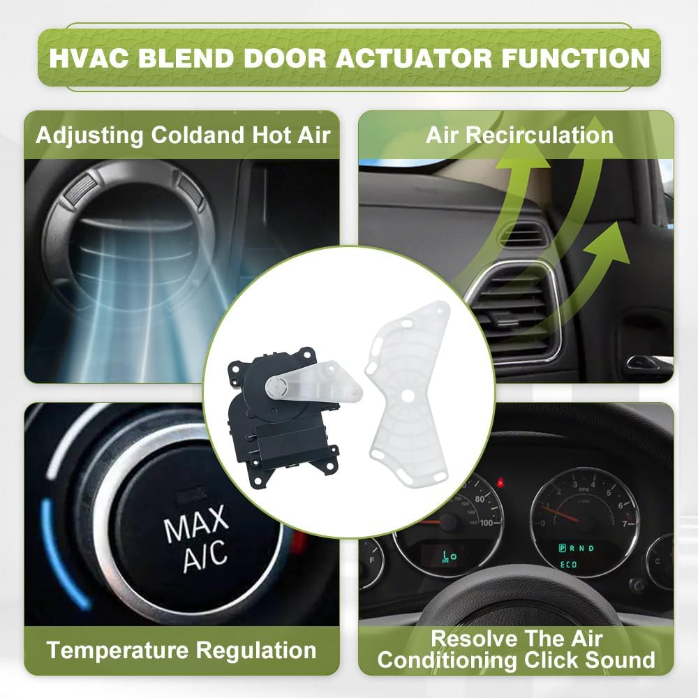 Specification:Product Name: HVAC Heater Blend Door ActuatorMaterial: ABS and MetalColor: As ShownLocation: Left MainNumber of Terminals: 5 PinsInstallation Hole Diameter: 4.5 mm / 0.18 inchProduct Size: 9.4 cm x 9.5 cm x 3.8 cm / 3.70 inch x 3.75 inch x 1.50 inch (L x W x H)Part Numbers: 25865637, 604-160, 604160Note: Please check on your car model details and exact OE number to confirm if this item is fittedFitment:Compatible with Cadillac CTS all engine all body style 2008-2013Compatible with Cadillac CTS V8 6.2L Sedan 2014Compatible with Cadillac CTS all engine Wagon 2014Compatible with Cadillac CTS all engine Coupe 2014-2015(NOTE: Please check on your car model details to confirm if this item is fitted)Package Included:1 Set of HVAC Heater Blend Door Actuators