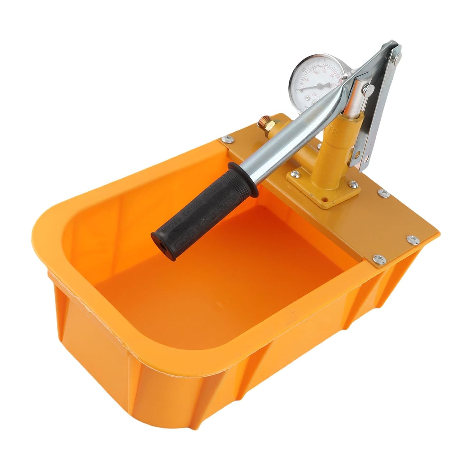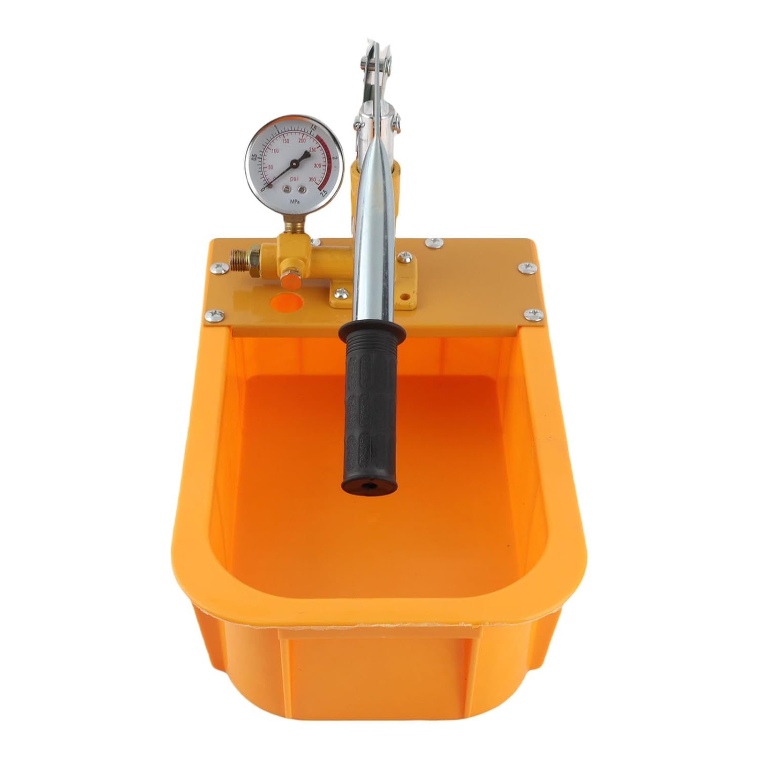 1. [WIDE APPLICATION SCOPE] Suitable for various pressure vessels and plumbing systems testing. 2. [DUAL PRESSURE LOCKOUT] Offers automatic and manual lockout options for flexibility in testing. 3. [STURDY HANDLE] Lengthened handle with 30cm length for durability and energy-saving operation. 4. [DURABLE MATERIAL] Constructed with aluminum alloy and plastic for lightweight handling at 50.02oz. 5. [COMPLETE KIT] Includes all necessary accessories such as screws, nuts, and rubber rings for easy testing. Specification: Item Type: Hydrostatic Pump Tester Product Material: Aluminum alloy, Plastic Weight: 1418g / 50.02oz Use: Test pressure pump PackageList: 4 x Screw 4 x Nut 3 x Rubber Ring 3 x Fitting 1 x Pipe 1 x Pressure Device 1 x Water Tank