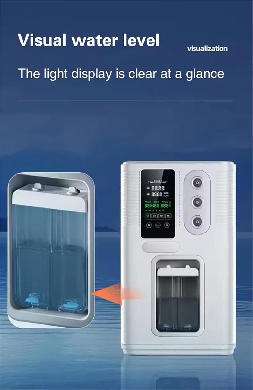 Hydrogen Inhalation Machine 3000mL/min H2 Inhaler, Hydrogen Water Generator, Low Noise SPE Water Electrolysis Ionizer Product Features 1.High Purity Hydrogen: Purity is more than 99.99Percent 2.Sufficient Actual Flow Rate Our machine’s actual output hydrogen is completely consistent with propagating flow rate, no false propaganda. 3.Strong Heat Dissipation: Our machines have a unique heat sink, so the temperature of the equipment will not be too high even if it is used for a long time. 4.Stable Performance: After longterm use of the machine, the flow rate and purity will not decrease, and the quality is stable. Product parameters Product Name: hydrogen inhalation machine Color: white Product Size: 270*330*450 Net Weight: 8.6kg Function: Hydrogen generator Hydrogen Purity: 99.9% Working Hours: 1/2/3 H Input Voltage: AC100~AC240V/50Hz~60Hz Hydrogen Output Rate: 900ml/min(600H+300O); 1200ml/min(800H+400O); 1500ml/min(1000H+500O); 1800ml/min(1200H+600O); 3000ml/min(2000H+1000O) Shell material: ABS Electrolys is method: PME pure water electrolysis Electrode film material: U.S. proton membrane + high-purity platinum coati Working TDS range:1-5PPM WHAT'S IN BOX 1 x Machine 2 x Nasal inhaler 1 x Power cord 1 x Manual