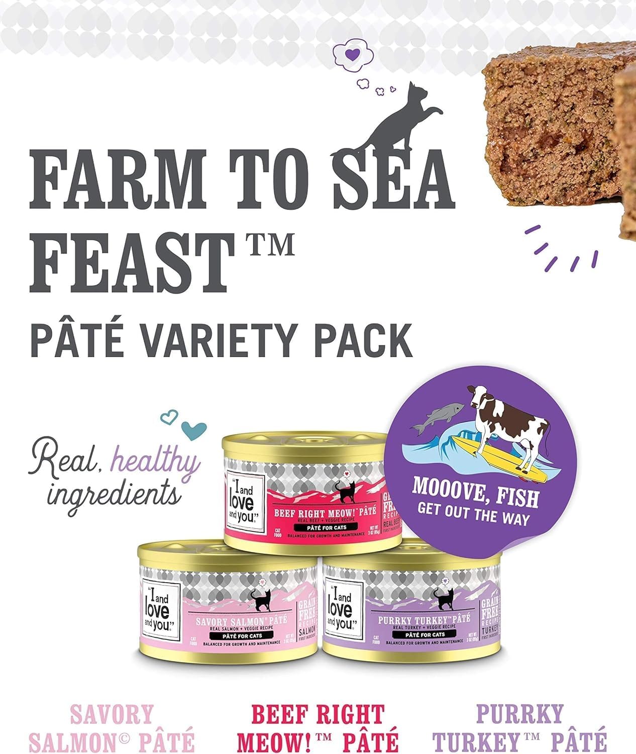 They say “Variety is the spice of life” and we wholeheartedly agree. Snag this savory “I and love and you” wet cat food variety bundle of chunky and moist canned pâté to keep mealtime exciting for your cat. While all of our wet cat food options are abso-freakin-lutely delicious, these also pack an extra functional punch thanks to the handpicked ingredients. Ya welcome.