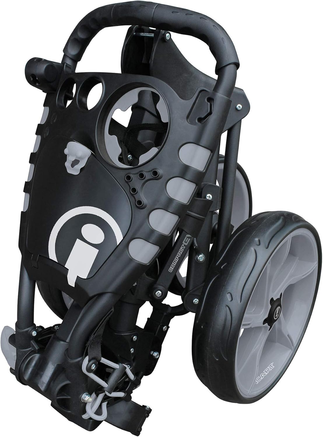 The iCart Evo is the smallest folding model in the award winning Masters the range of golf trolleys. The Evo's fast fold system means the trolley will reduce down quickly to a compact size of just 57x44x36cm. The trolleyfeatures an adjustable height multifunction handle which boast a storage compartment, Drinks holder, Score card holder and multiple golf ball storage. The trolley comes complete with an adjustable umbrella holder allowing for use in wet weather conditions. In conclusion the lightweight yet robust aluminium frame features a full 5 year manufacturers warranty. FEATURES 5 year frame warranty. Quickly folds down to a compact size For easy transport and use on course Quick release wheels Adjustable multi feature handle Adjustable height handle Built in drinks and scorecard holder Universal umbrella holder included Universal bag fitment Quick release wheels Adjustable bag straps Quick action footbrake. Dimensions when folded - 57x44x36 Lightweight aluminium frame - 7.5kg