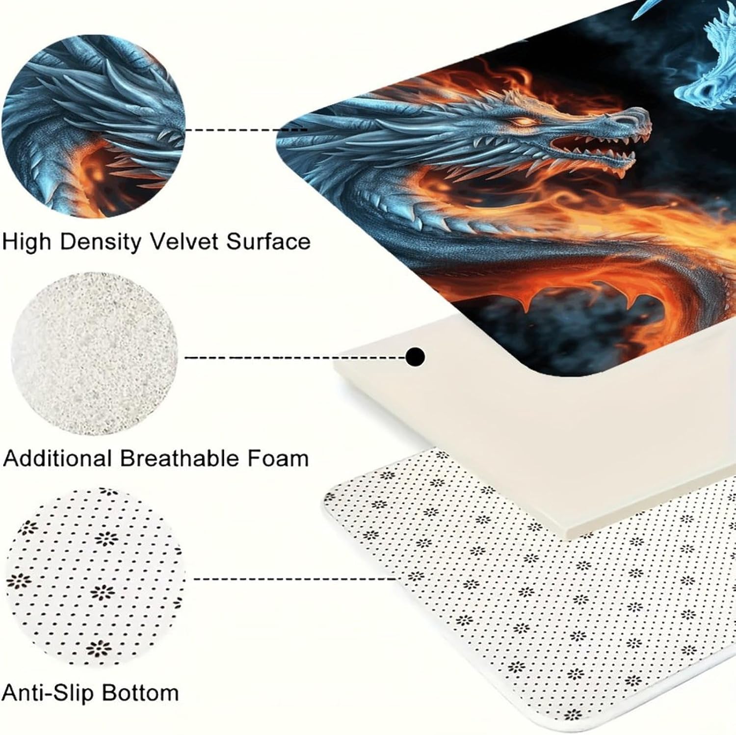 Introduce a new level of ease and visual harmony to your culinary space with this essential three-piece Ice And Fire Dragons kitchen mat set.Designed specifically for use areas,these cushioned kitchen rugs provide a welcome layer of support right where you need it most–in front of the sink,stove,or prep counter.the fabric offers a plush,dense texture underfoot,making standing tasks noticeably more comfortable.The set functions perfectly as versatile kitchen area rug solutions,fitting seamlessly into your existing layout.The core of these anti fatigue Ice And Fire Dragons kitchen rug sets lies in the selected velvet material.This fabric choice delivers both the sought-after softness and a practical thickness that gently cushions your feet,helping to alleviate the tiredness that comes with long cooking sessions.Beyond comfort,maintenance is refreshingly simple;they are washable kitchen mats designed to maintain their appearance through regular cleaning.Extend the utility and aesthetic charm beyond just the kitchen.The soft Ice And Fire Dragons kitchen runner rugs design and quality construction make them adaptable companions for other areas like the bathroom vanity or even outdoor patio setups where a comfortable floor mat is desired.Arrange the three pieces to create a cohesive runner effect or use them individually as targeted floor mats where support is needed.This set effectively combines practical comfort,effortless care with its washable nature,and an attractive upgrade to your floor space,making it a smart addition to any home.