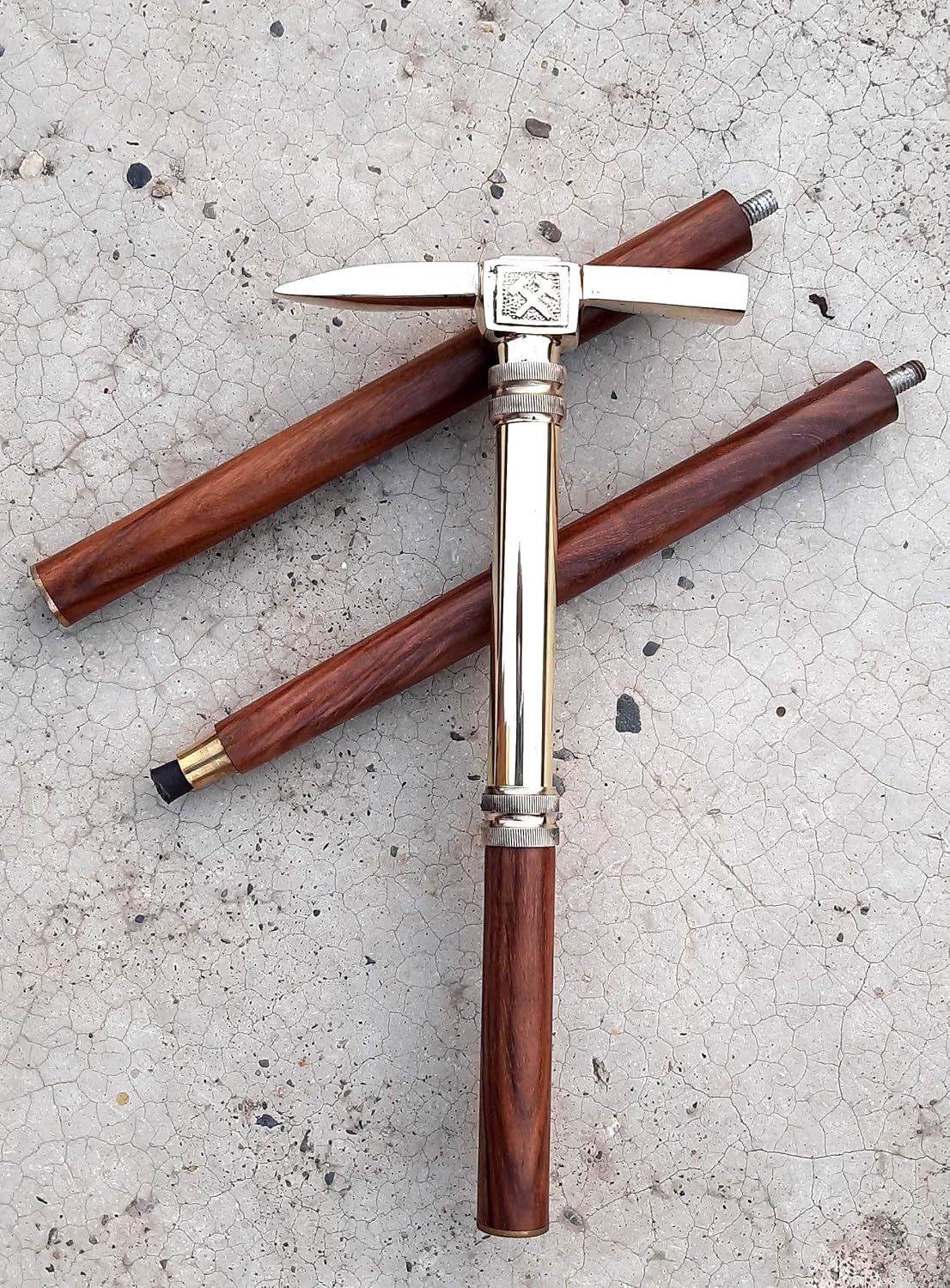 Ice Axe look Walking Stick, Beautiful Design Solid Brass Handle 3 Fold Wooen Cane This Item Is Handmade Materials Wood,Brass,Rubber & Iron WELCOME TO THE STORE OF DECOR-CASTLE COLLECTION A Shop of Walking Canes-Handmade Antique-Maritime- Reproduction-Collectible-Nautical-Decor-Vintage Gift Items Item Description : Cane Size : 87 cm (Approx) Handle Height Size : 5 cm (Approx) Full Stick Size : 92 cm (Approx) Condition:- 100% New Usage :- Maritime Decor / Usable / Gift Please Visit Our Store & Check More Beautiful Items 100% Brand New and high quality. Walking poles work your arms, shoulders, chest and upper back muscles through a functional range of motion as you walk — which can help you turn your daily walk into a full-body workout. This activity is sometimes called Nordic walking. Most walking poles have rubber tips that grab the pavement and wrist straps that secure the poles to your arms. With one walking pole in each hand, you grip the handles and push off with each stride. Sturdier walking poles designed for hiking are known as hiking or trekking poles. Consider the benefits of walking poles: The arm movement associated with walking poles adds intensity to your aerobic workout, which helps you burn more calories. Walking poles improve balance and stability. Walking poles help you maintain proper posture, especially in the upper back, and may help to strengthen upper back muscles. Walking poles take some of the load off your lower back, hips and knees, which may be helpful if you have arthritis or back problems. Walking with poles may improve your mood. Walking poles in various fixed or adjustable lengths are available online and in many Decor castle goods stores.