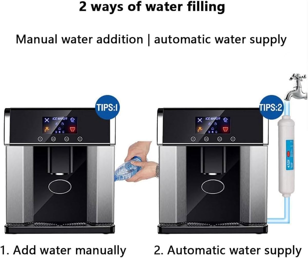 It only takes 6-8 minutes to make ice, no need to wait long. In the hot summer, you can cool down while working. 10 bullet ices that are not easy to foam and melt can be dispensed at one time, which can better restore the flavor of cold drinks.SpecificationName: ice cube makersIce shape: roundShell material: stainless steel, plasticRated current: 0.75AWater inlet method: manual + automatic water inletFunction: ice making/ice waterAmount of ice cubes per time: 10Input power: 110WRefrigerant: R134a/45gIce size adjustment: S/M/LCapacity: 1.8L water tank, 600-800g ice storage capacitySafety function: automatic power offWeight: 13.5kgProduct size: 31*41*37cmPackage Included1*Ice cube makers1*Instruction manualNote:1.Due to differences in light, environment, monitor, etc., it is normal that there is a certain color difference between the product and the picture.2.If you have any questions or concerns, please contact us! we will reply you within 24 hours!