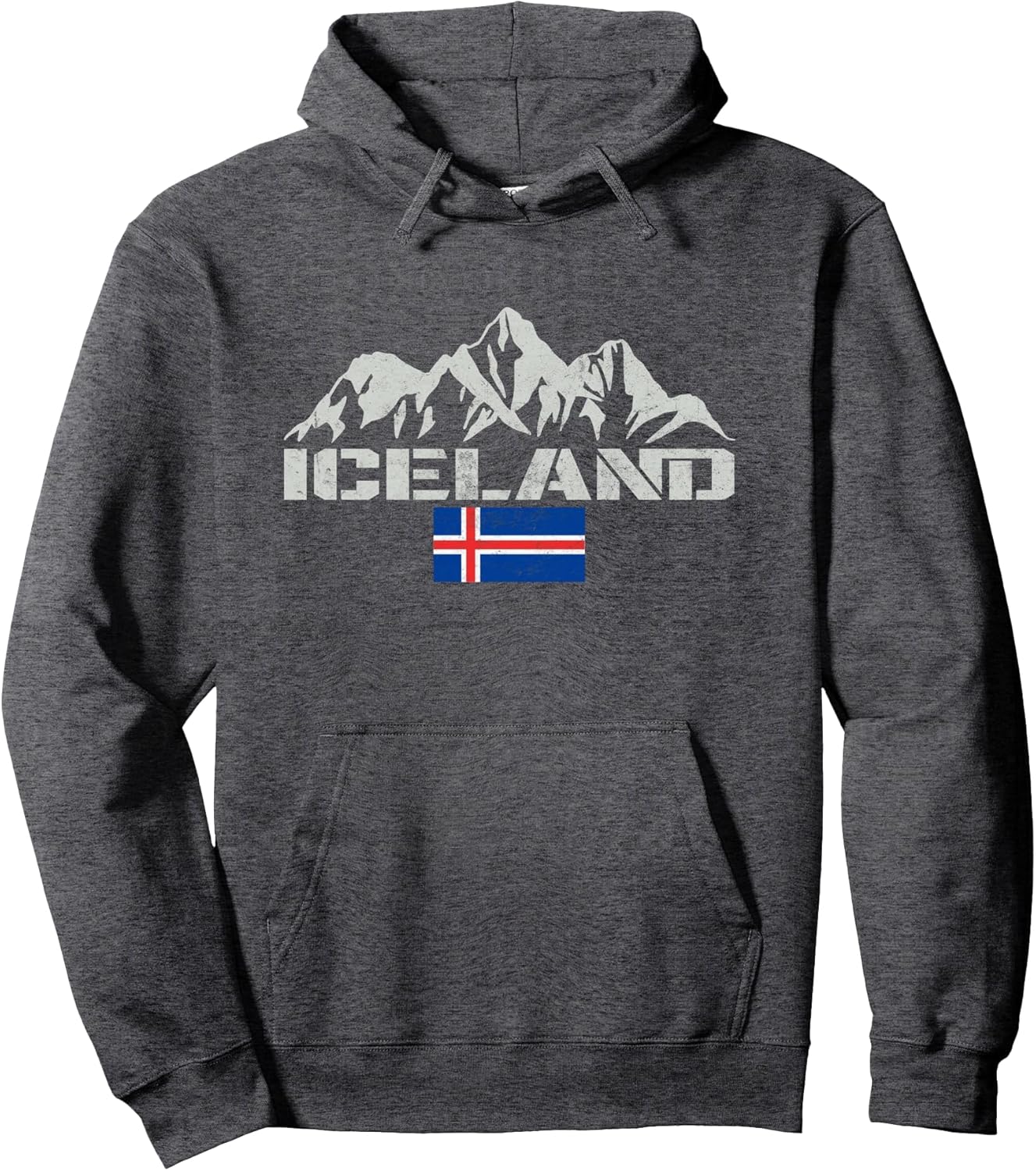 | Item Type Name | Iceland Mountains Vintage Flag Souvenir Iceland Pullover Hoodie, Adult Unisex, Navy Blue, Large |
