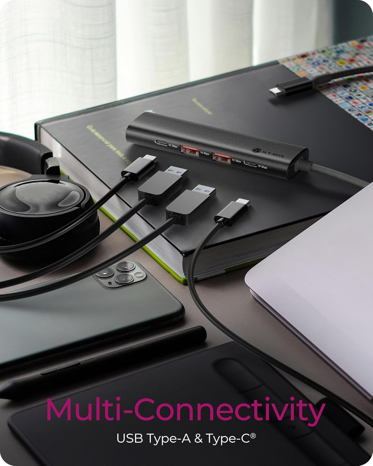 The ICY BOX IB-HUB1437-CPD is a convenient desktop hub that effortlessly expands your USB connectivity. With four USB 3.0 Type-A ports, this hub offers the perfect solution for all your peripherals. The high-quality workmanship of ICY BOX ensures reliable data transfer with the fast USB 3.0 speed. The hub is ideally designed for desk use and allows convenient access to all connected devices. Thanks to its slim design, it fits harmoniously into any work environment. The plug-and-play functionality makes installation particularly easy - just plug in and use immediately. The hub is backward compatible with USB 2.0 and is perfect for use with external hard drives, keyboards, mice and other USB peripherals.