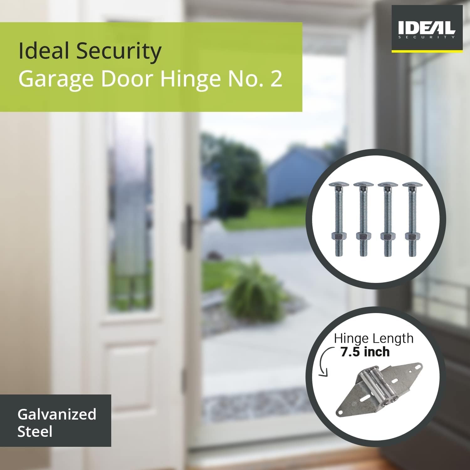 Product Description Ideal Security's garage door hinge will add decorative flair to your garage and enhance your home security. Compatible with overhead sectional garage doors, the hinges are used for garage door panels. Number 2 hinges are installed on the outer edge of the door, connecting panels two and three. Ideal Security has been supplying quality hardware to door manufacturers for 65 years. Please explore our other door and window hardware products for your home. From the Manufacturer No 2 garage door hinge, galvanized includes nuts and bolts.