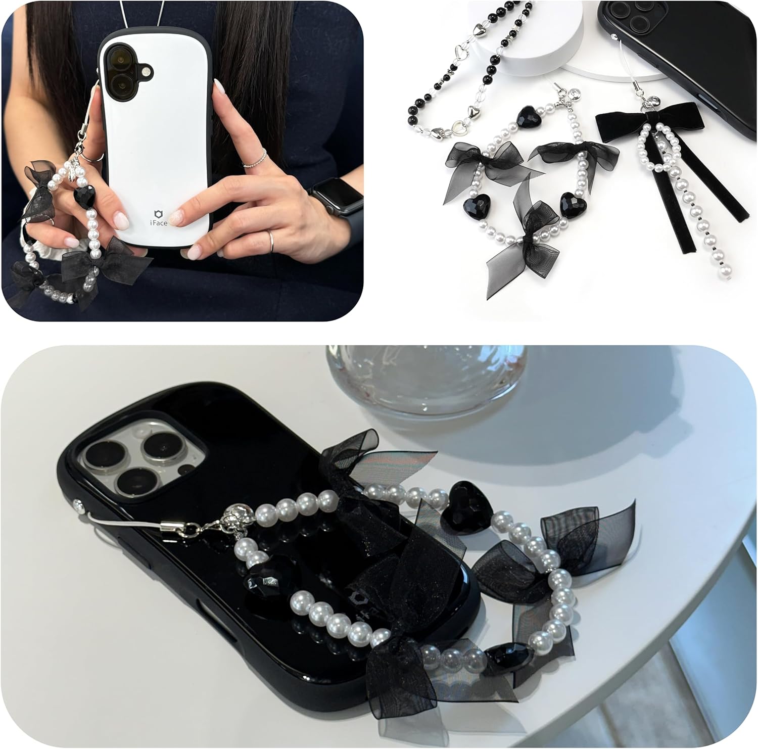 Bundle Contains: 1 x BeBling Phone Case Compatible with iPhone 16 Black + 1x Phone Charm [Satin Bows]
