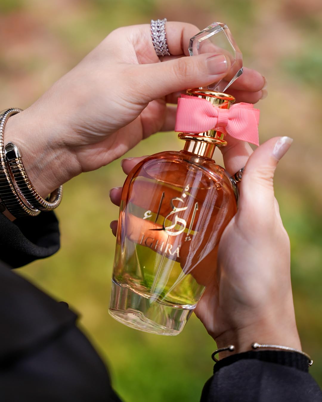 Ighra Eau de Parfum – 100ml Ighra is a fragrance of temptation and elegance, capturing the duality of softness and seduction. It opens with a juicy blend of pear, black currant, and rhubarb, creating a playful, modern first impression. The heart unfolds into an opulent floral bouquet of tuberose, orange blossom, and Turkish rose, lush and feminine. The dry-down reveals a warm, creamy base of hazelnut, sandalwood, and musk, giving the scent depth, comfort, and addictive appeal. Ighra is a signature of charm and confidence — sweet, sensual, and always unforgettable.