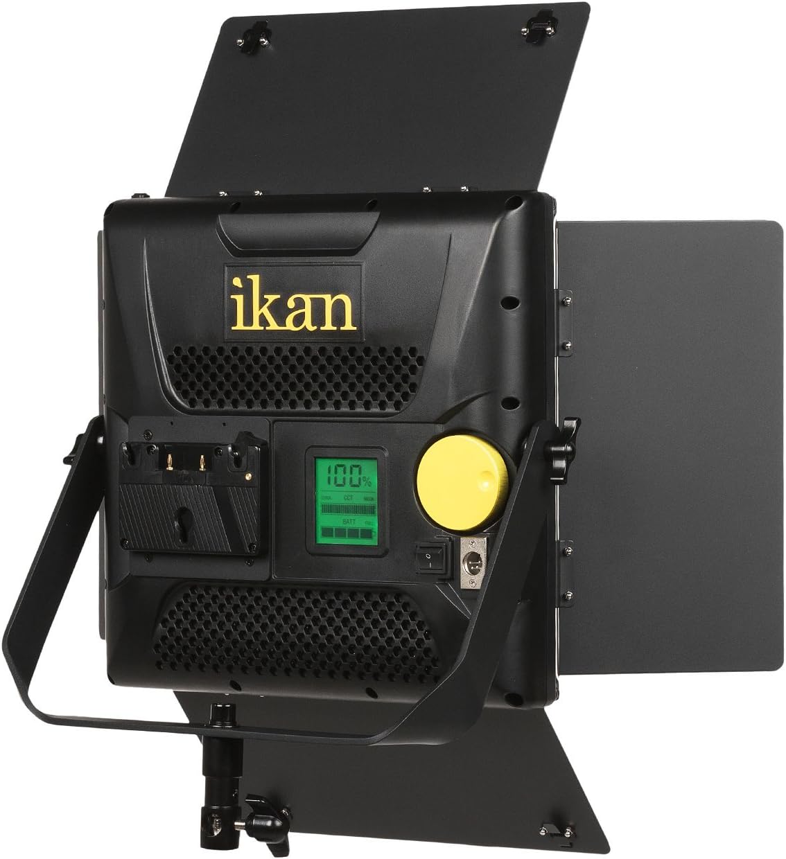 Introducing Ikan's new brand of Rayden LED lights! What you can expect from the high CRI 45-degree lenses is extremely bright light! The Rayden's bi-color adjustability ranges from 3200K-5600K and works well with any lighting production. With a 50-degree beam angle, you can easily light a large area with one fixture. The Rayden 1 x 1 light is equivalent to a 900-watt incandescent light. Versatility is a key feature of the Rayden LED lights. The 30-degree yoke, baby 5/8" and junior 1 1/8" combo pin allow you to attach and configure the light in different ways. Strong, steel tension knobs on the yoke also lock the light firmly in place when in use. On the back, the large yellow button/knob allows you to adjust the light's settings with a few simple clicks. This includes the brightness, color temperature and DMX channel. The LED readout also provides very precise measurements. This light package includes AB and V-mount pro battery plates as well as Ikan's reliable barn doors with intensifiers. Best of all, the new Rayden LED lights have a maximum wattage draw of 82 watts at 0.6 amps so you can plug it in just about anywhere!