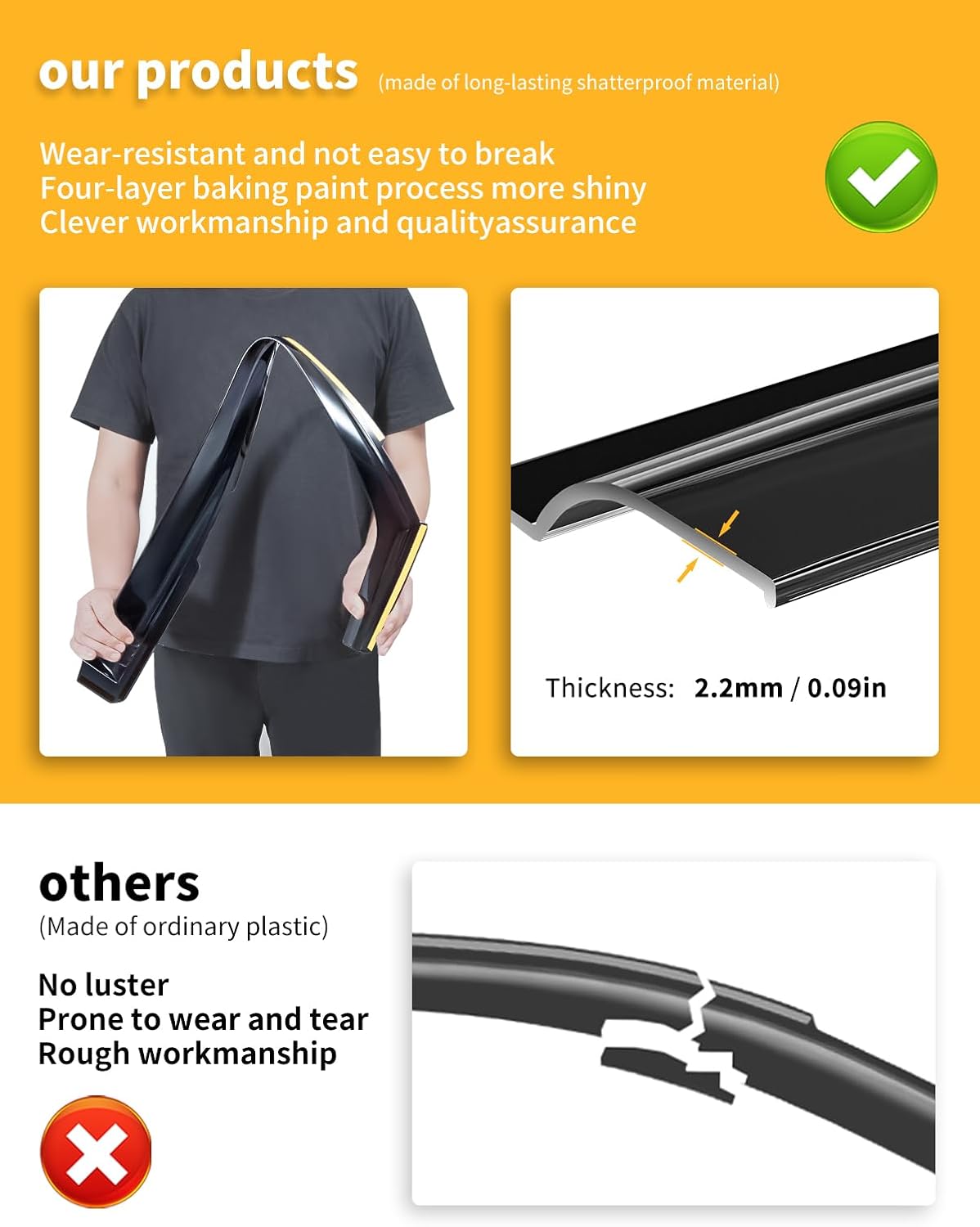 • 【For a Fresher Ride】 Keep rain and weather out while letting fresh air in to whisk away those stale, stubborn odors from pets, smoking, spills and more. The air inside your car will be more circulated, and your mood will be more pleasant.