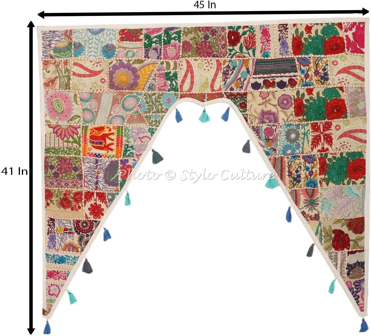 Stylo Culture traditional vintage patchwork door hanging window valance using vintage fabric patches in a range of various beautiful colours and patterns are designed to fit into any home decor interior settings and almost all colour schemes. They give the Bohemian Boho look to any interior decor. Let your home get acquainted to the sumptuous luxurious yet boho look of these pretty door hanging window valance torans. Toran also known as Bandanwal, refers to a decorative door hanging in Hinduism. The origin of torans can be traced to Puranas (Hindu mythological work). Torans are used to decorate the main entrance of the home. The main idea behind decorating the homes is to please and attract the goddess of wealth, Lakshmi. These torans are the first thing that welcomes guests. Every corner and dimension of these door hangings don't fail to surprise you with their appeal. The door window valance is in white color and flaunt the beautiful embroidery patchwork using the vintage patches carefully chosen and set together to make a collage & floral patterns. The sales package comprises of 1 Door Hanging Window Valance. Give your home decor a bohemian make over. SINCE THE DOOR HANGINGS VALANCES ARE MADE FROM VINTAGE FABRIC PATCHES, THERE WILL BE VARIATION IN THE PATCHES HOWEVER THE BASE COLOR WILL REMAIN SAME.